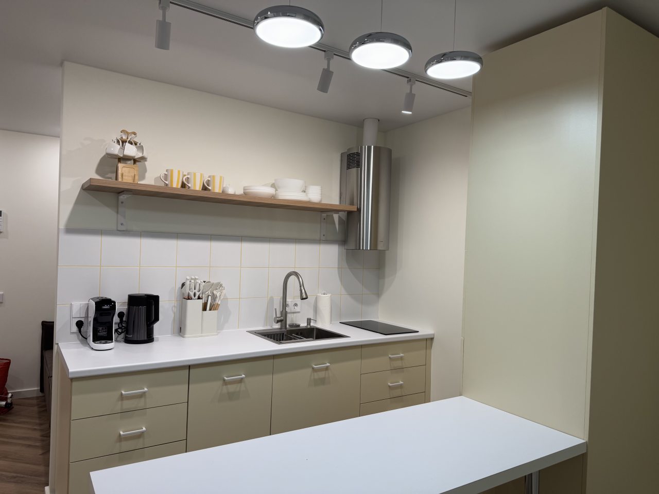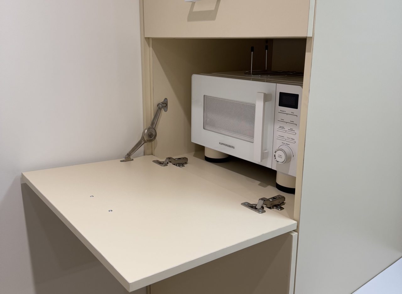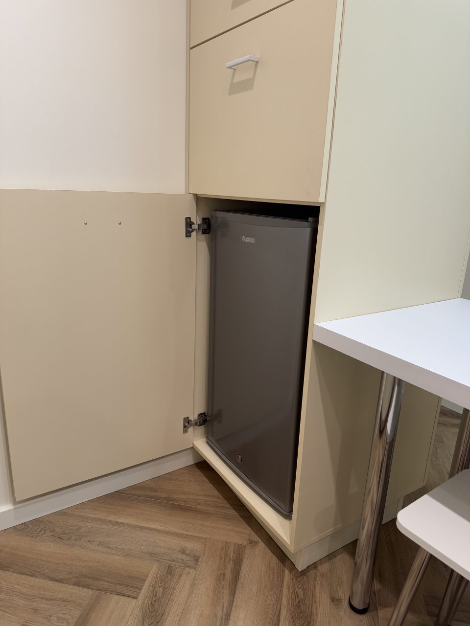 На общей кухне имеется: холодильный шкаф, чайник, посуда, электрическая плита, кулер, СВЧ-печь, кофемашина, чайный набор. Перекусить можно в кафе «Империал». Напротив расположен круглосуточный магазин.