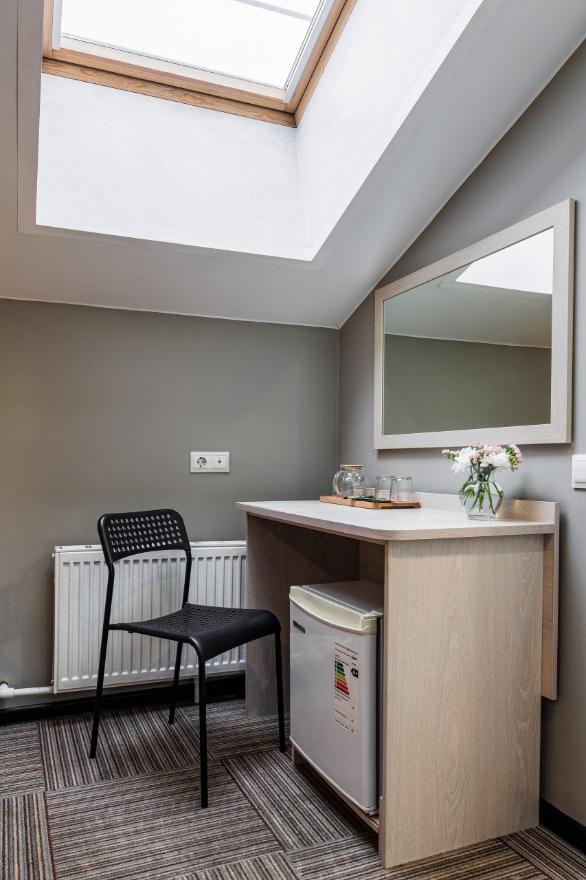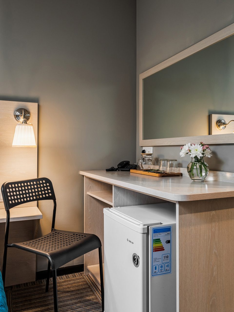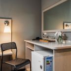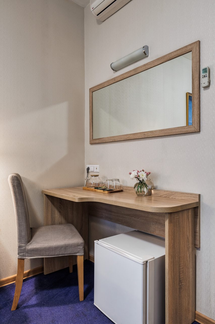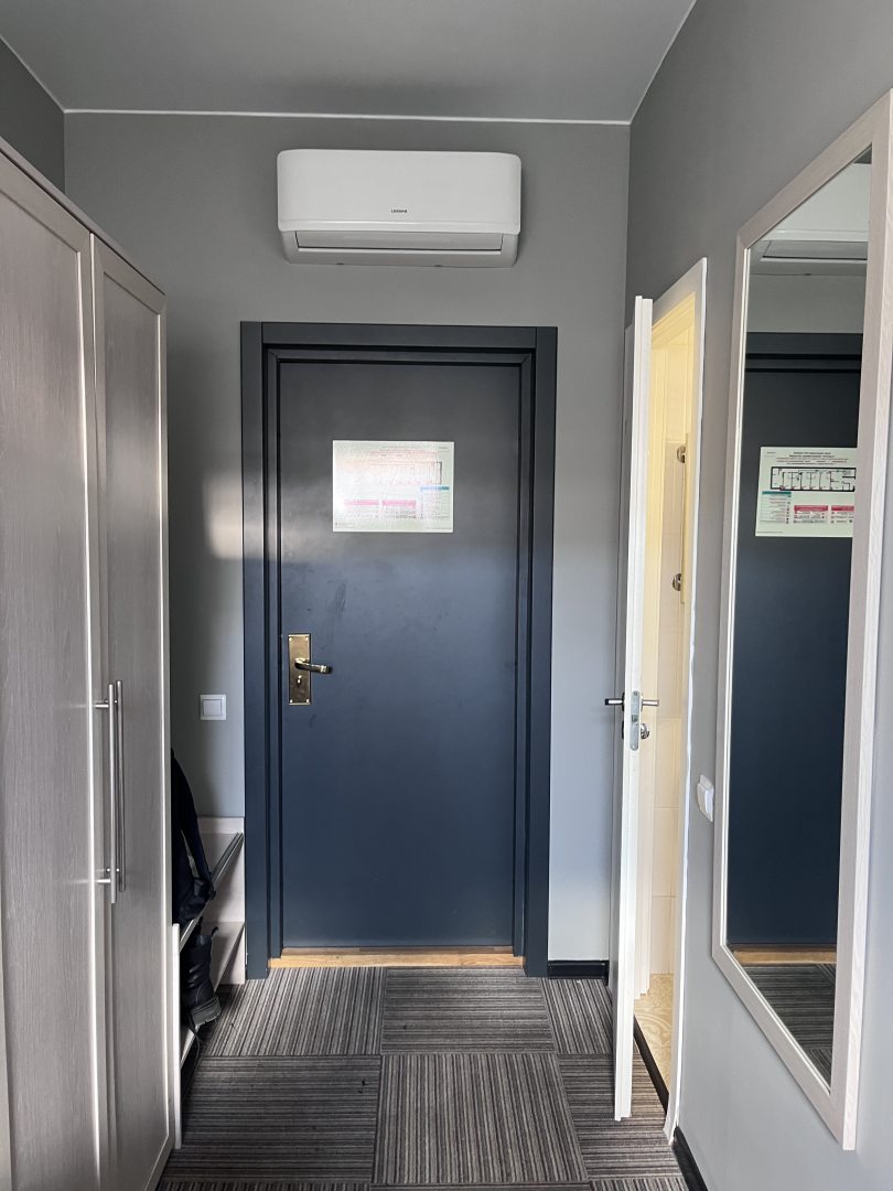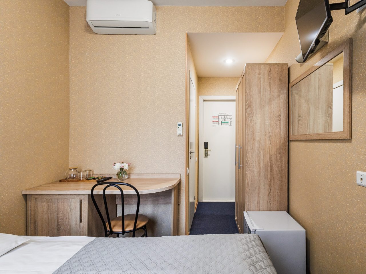 Есть своя парковка во дворе. Номера небольшие, но для того чтобы переночевать всё необходимое есть. В номере всё самое необходимое есть: небольшой холодильник, телевизор, кондиционер, две кравати, спалось хорошо. Душ совмещеный с умывальником и санузлом. Удобное расположение отеля. Всё понравилось и всё устроило. Надеемся приехать ещё.
