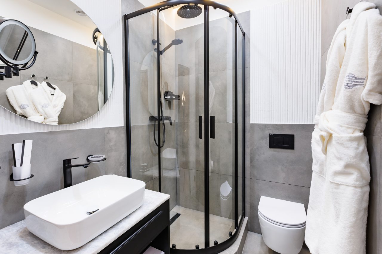 Отель современный, стильный. Мы расположились в двухместном комфорте. В нем у нас было все нужное для проживания. Телевизор хороший большой, много разных каналов ловил. Интернет работал бесперебойно и мобильный практически не включали. Шкаф для одежды есть. Спальное место удобное, широкое. Ванная комната своя. Окна широкие, и к счастью шторы плотные Black Out. Хорошее решение, мы можем рекомендовать.