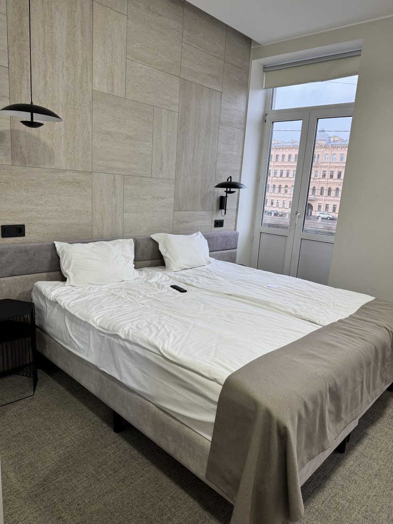 Отличный отель, прекрасное расположение. Персонал очень вежливый и отзывчивый.Бронировали номер с видом на Фонтанку, в котором есть все необходимое для проживания.Номер стильный, современный, просторный, все новое. По нашему желанию, предоставили номер с балконом.Вид шикарный.Приехали на машине, парковка во дворе, это очень удобно. Обязательно вернемся сюда снова .Всем рекомендуем!!!