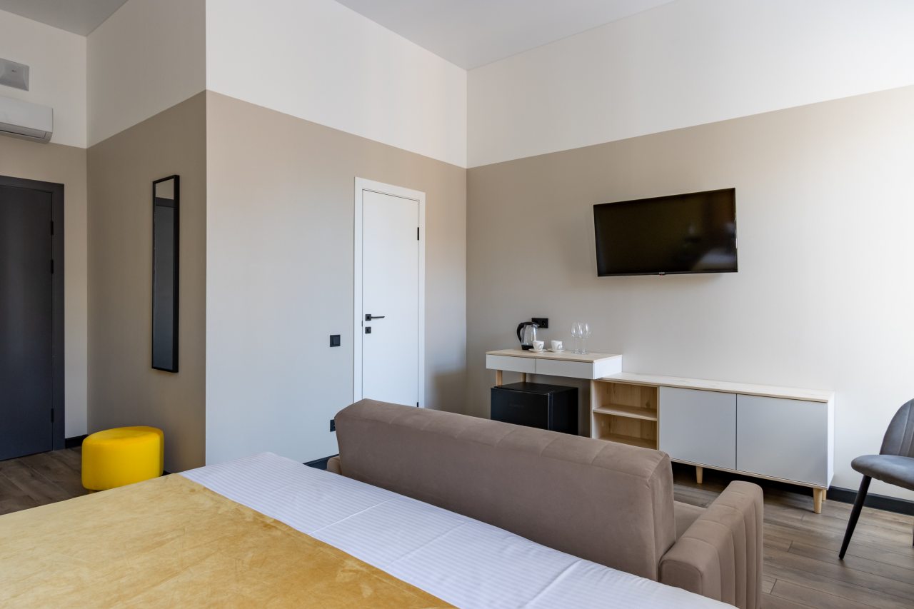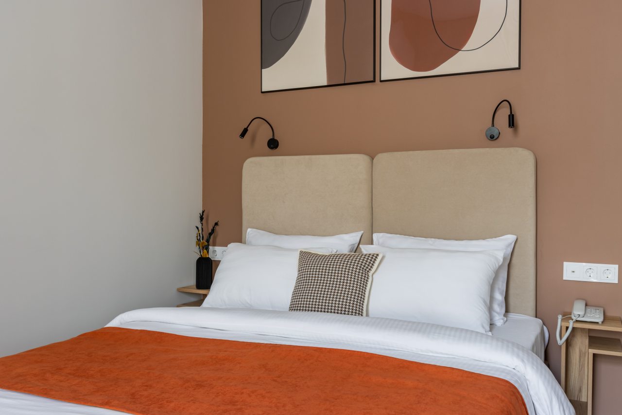 Номера в гостинице делятся по нескольким категориям – «Простой люкс» и «Для новобрачных», «Семейный», «Для некурящих», «С видом на город», «Одноместный», «Двухместный». Бронируйте проживание на официальном сайте 101Hotels.com по самым выгодным предложениям. В оформлении нет многочисленных контрастных оттенков. Преимущественно – теплые и нейтральные тона. Среди удобств в номерах предусмотрена качественная мебель, есть ванная комната, телевизор с кондиционером, а также доступ к Wi-Fi по всей территории.