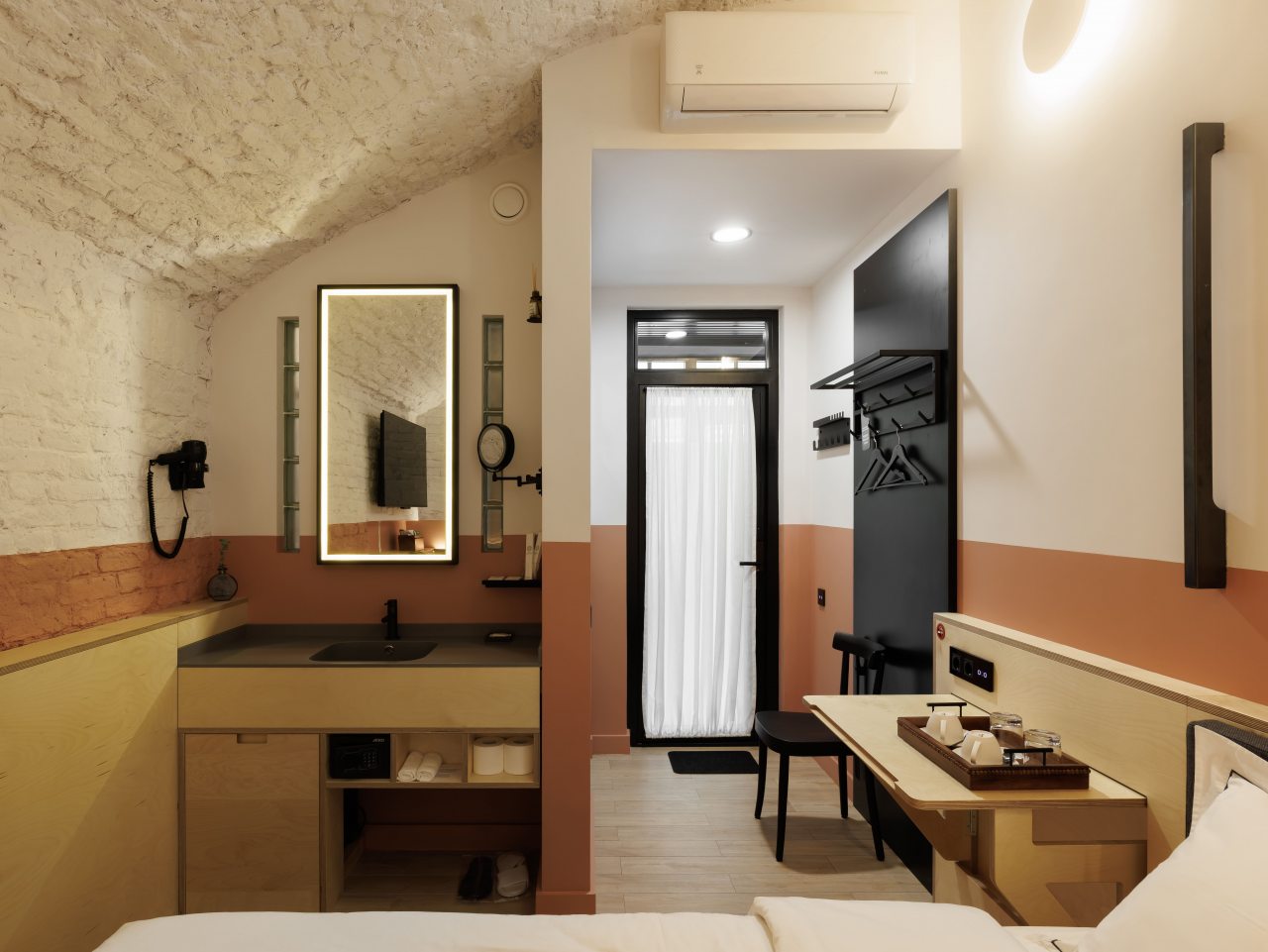 Номер соответствовал классификации «smart»: всё современно и эргономично. Расположение рядом с Невским проспектом — идеальное для важных встреч. Wi Fi рабочей скорости позволял проводить видеозвонки без задержек. Интерьер — лаконичный.