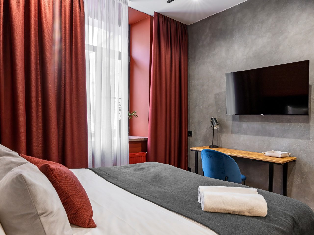 Номерной фонд составляют 16 номеров с уютным интерьером и современной техникой: SmartTV, высокоскоростной Wi-Fi, индивидуальный климат-контроль. Есть даже сейф для хранения особо важных вещей. Ванная комната укомплектована феном, халатами и тапочками, средствами личной гигиены. Гостеприимный и отзывчивый персонал всегда ответит на возникающие вопросы и обеспечит высокий уровень сервиса.