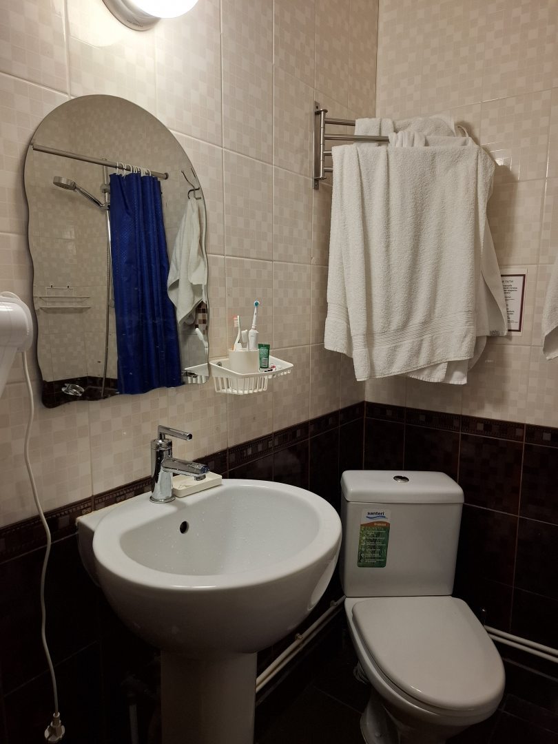 Понравился интерьер комнаты все чисто и красиво. Понравилась ванная там а не душевая кабина. Белье с полотенца поменяли на 4 день. Удобно для проживания в центре. Питание на 1этаже в городской столовой нормально и не дорого. Парковка на городской улице платная 100 руб. час с 8.00 до 20.00.вечером без платно.