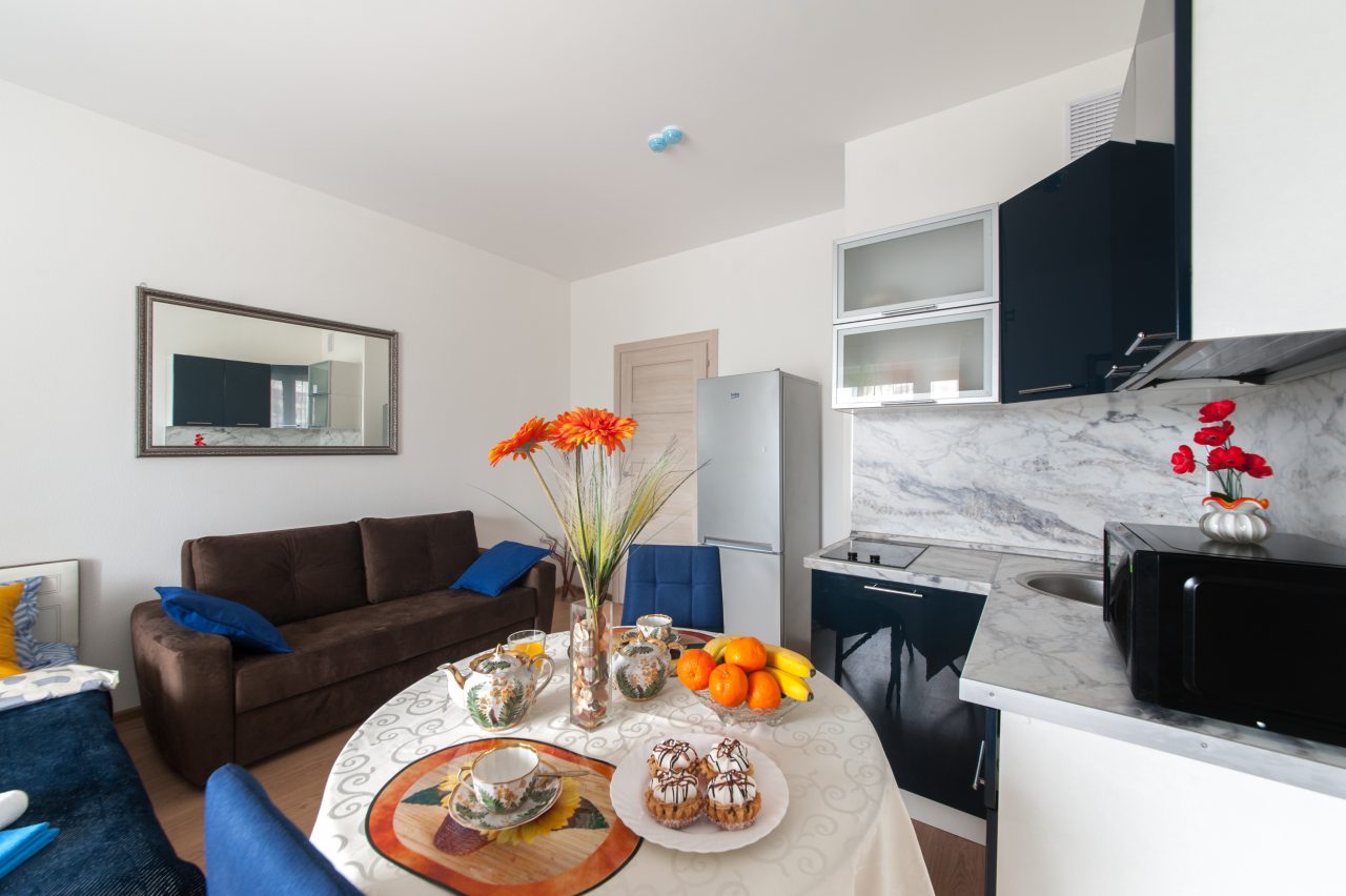В Питере мы планировали поездку заранее и брали данные апартаменты. Они находятся недалеко от метро и по стоимости получается очень выгодно. Мы размещались в студии под номером 1 со своей кухней и санузлом. Мебель вся в отличном состоянии. В этих апартаментах коммуникации работают хорошо без перебоев. Заселились быстро по ключ-карте. Также без проблем и выселились. Хорошая и недорогая гостиница, главное успеть забронировать.