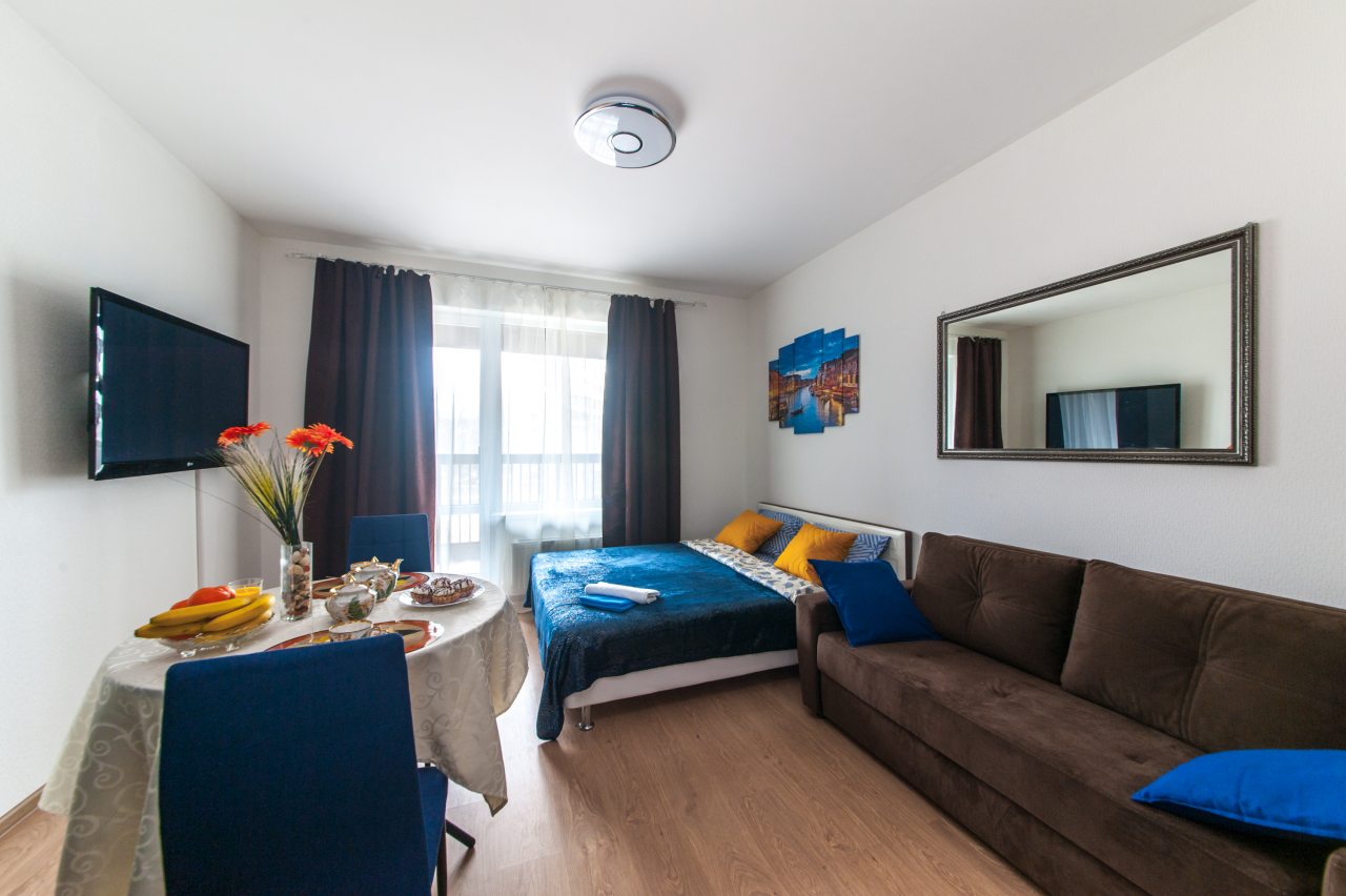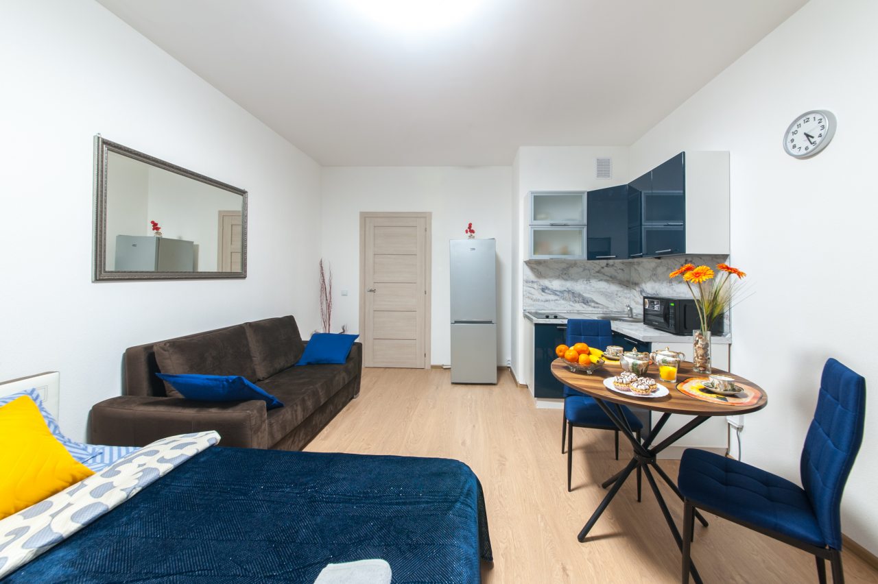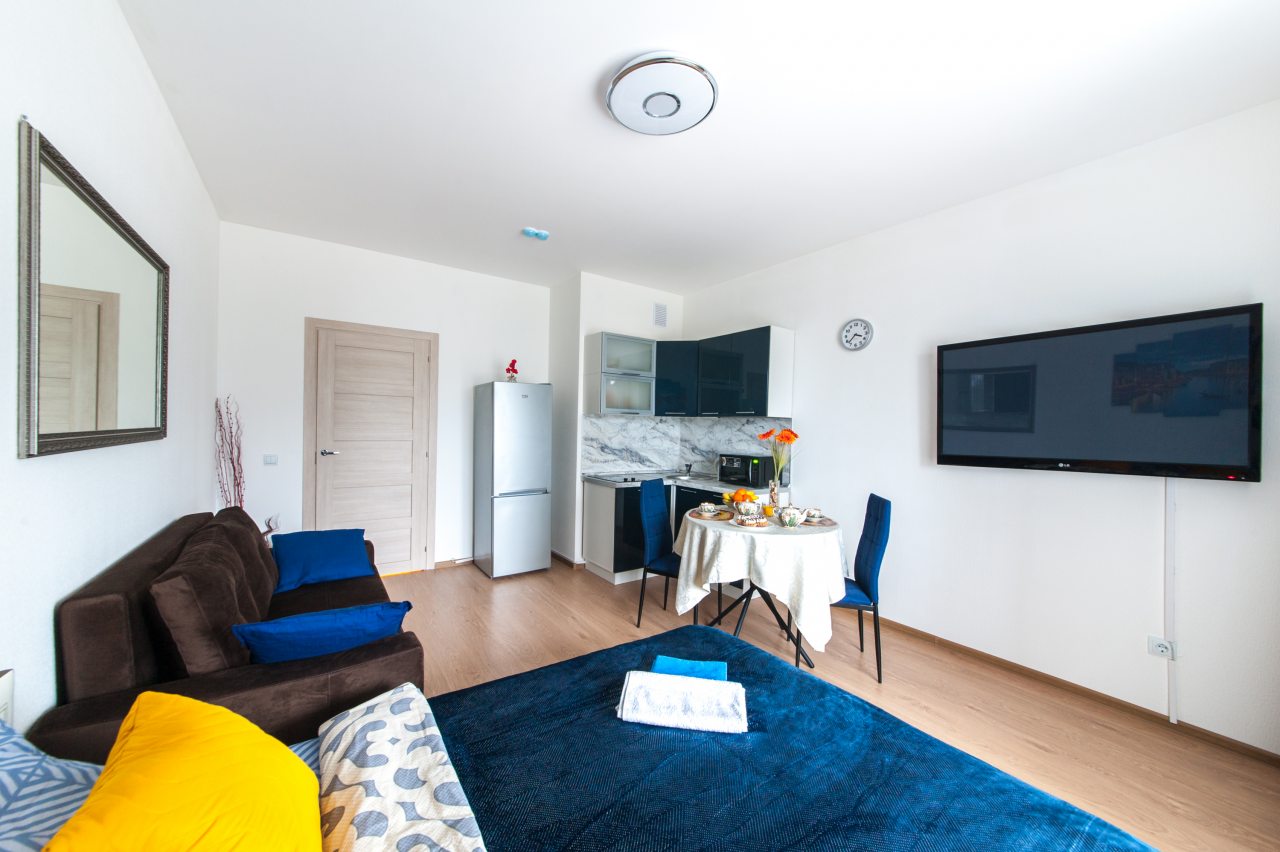 Мне очень понравилось проживать в этих апартаментах. Квартира находиться на территории хорошего ЖК. Интерьер в квартире светлый и очень приятный для глаз. Вся мебель и техника в отличном состоянии. В минуте ходьбы находиться автобусная остановка.