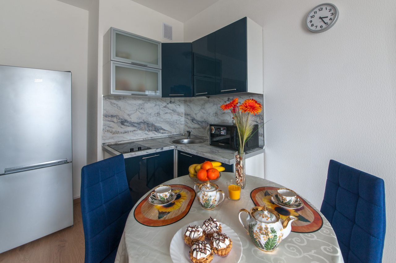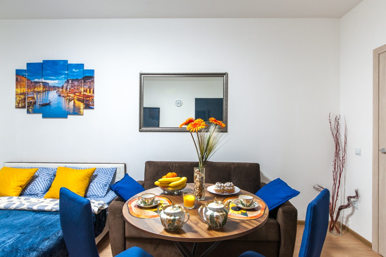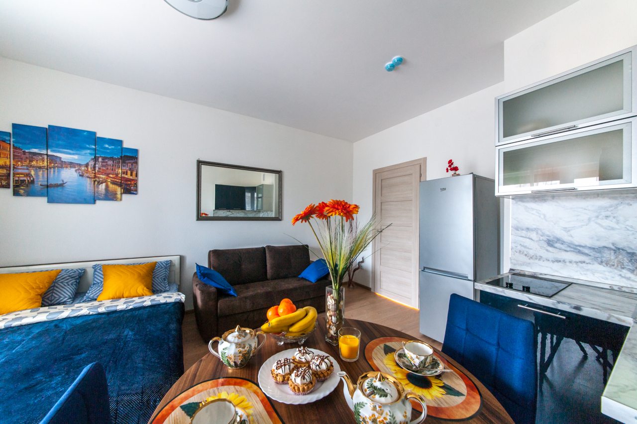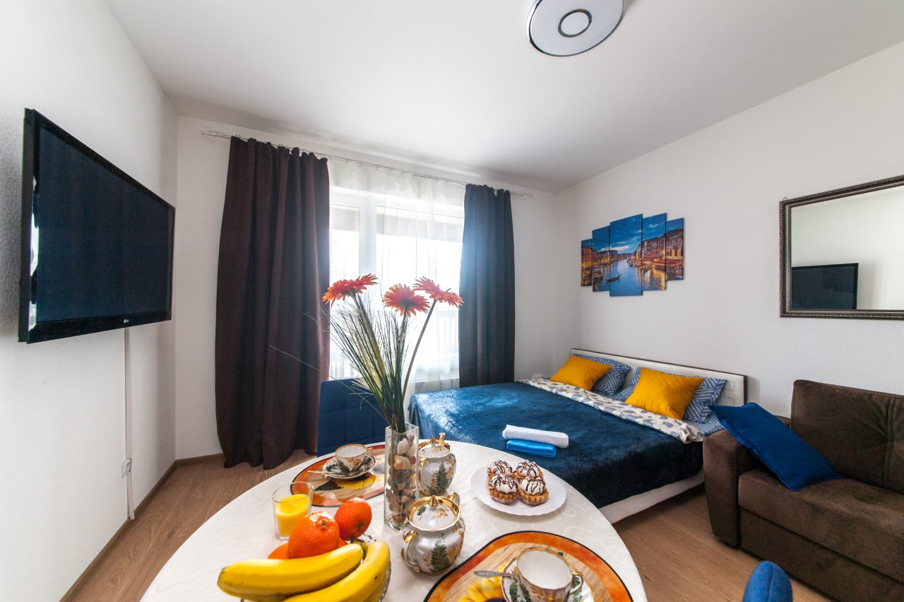 Мне очень понравилось проживать в этих апартаментах. Квартира находиться на территории хорошего ЖК. Интерьер в квартире светлый и очень приятный для глаз. Вся мебель и техника в отличном состоянии. В минуте ходьбы находиться автобусная остановка.