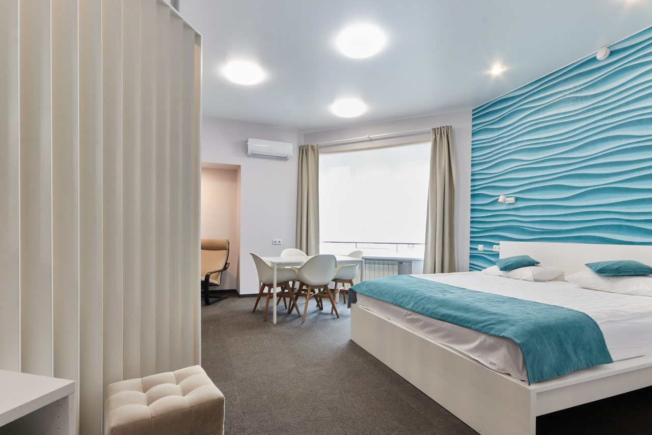 Для размещения предлагаются комфортабельные номера с современной отделкой и качественной мебелью. Здесь проводится ежедневная уборка и есть все необходимое для полноценного отдыха. В ванной комнате Вас ждет комплект свежих полотенец и средства личной гигиены.