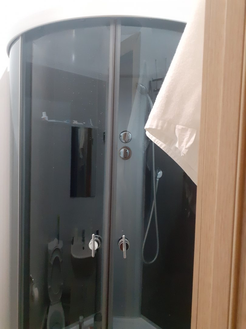При открытии дверей пахнуло жаром, ну те теплом, кости мои хрустнули, подумалось, наконец то отдохну, не буду мерзнуть. Так и есть тепло, организм отдыхает. Внутри чисто, почти клиника, почти реанимация, шикарный вид из окна с высоты птичьего полета. Автономный душ, просторный, воду не пропускает, рядом туалет, мягкая бумага, вешалки из нержавеющей стали, достаточно полотенец. Душ и унитаз просто бомба, не надо никуда выходить. Полотенец достаточно, белье чистое, телевизор