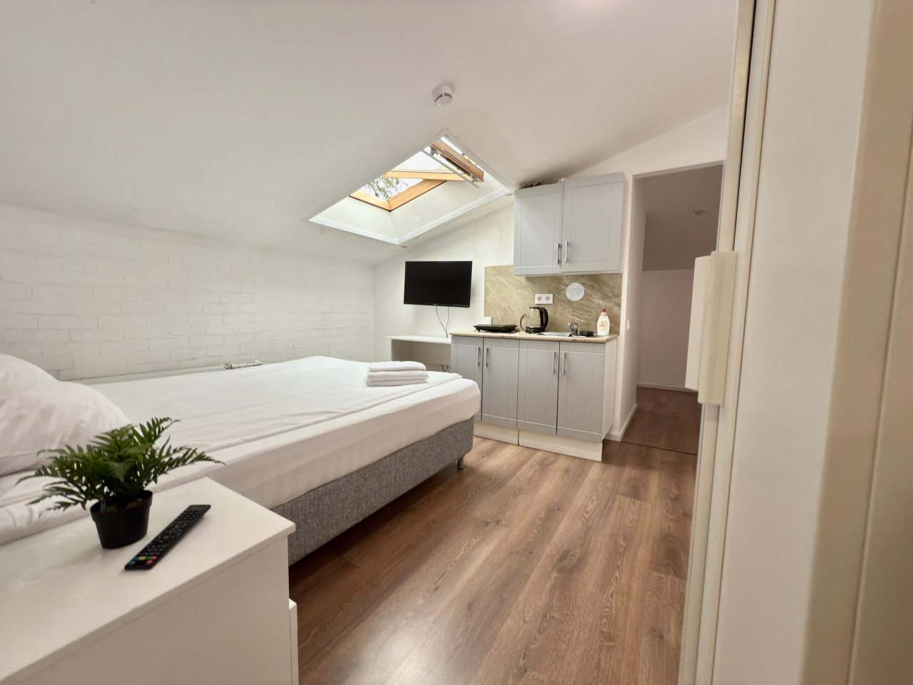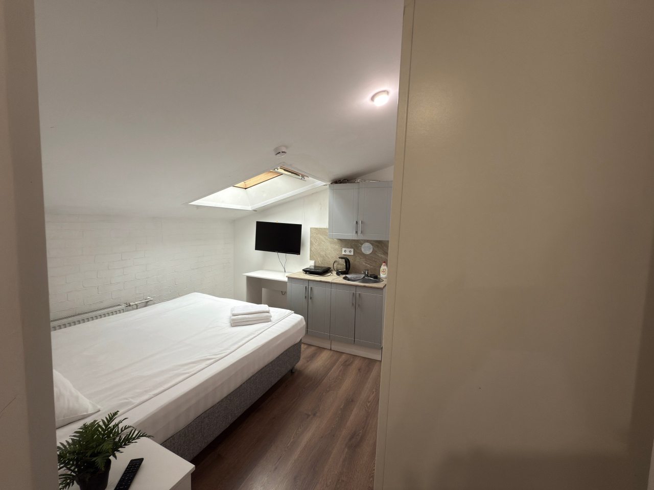 Нам понравилось здесь проживать. Неплохое расположение, но мы были на машине, поэтому остановки или общественный транспорт нам не нужен был. В апартаментах достаточно чисто. Комната сама по себе небольшая, но так как мы приходили сюда только спать, то нас все устраивало. Горячая вода была. Напор отличный. Можно было внутри разогреть еду и даже что-то приготовить.