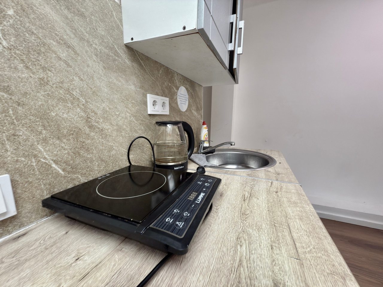 Для приготовления вкусных завтраков, обедов или ужинов постояльцы могут воспользоваться мини-кухней, оборудованной: чайником, варочной панелью, столовыми приборами и посудой.