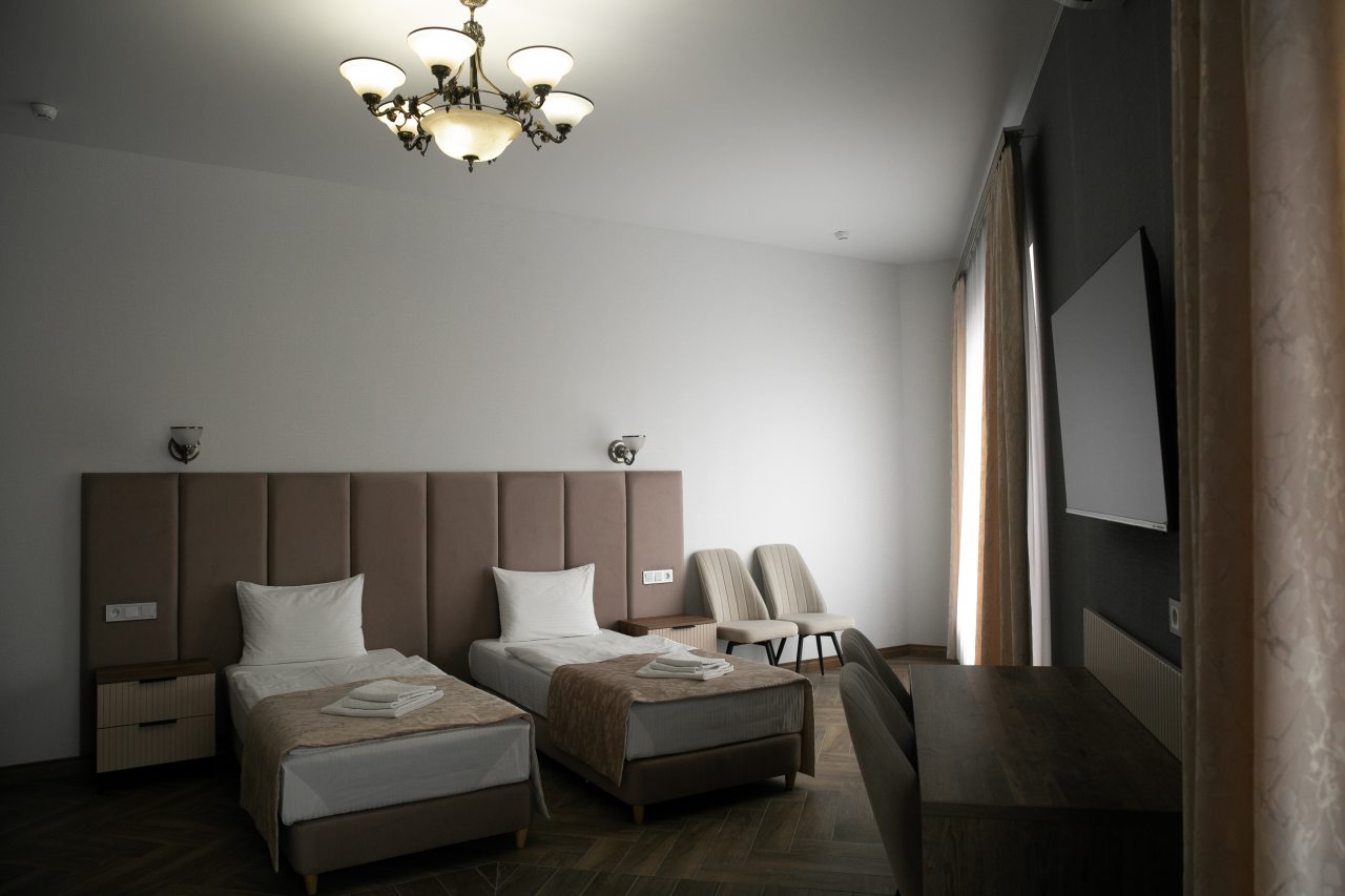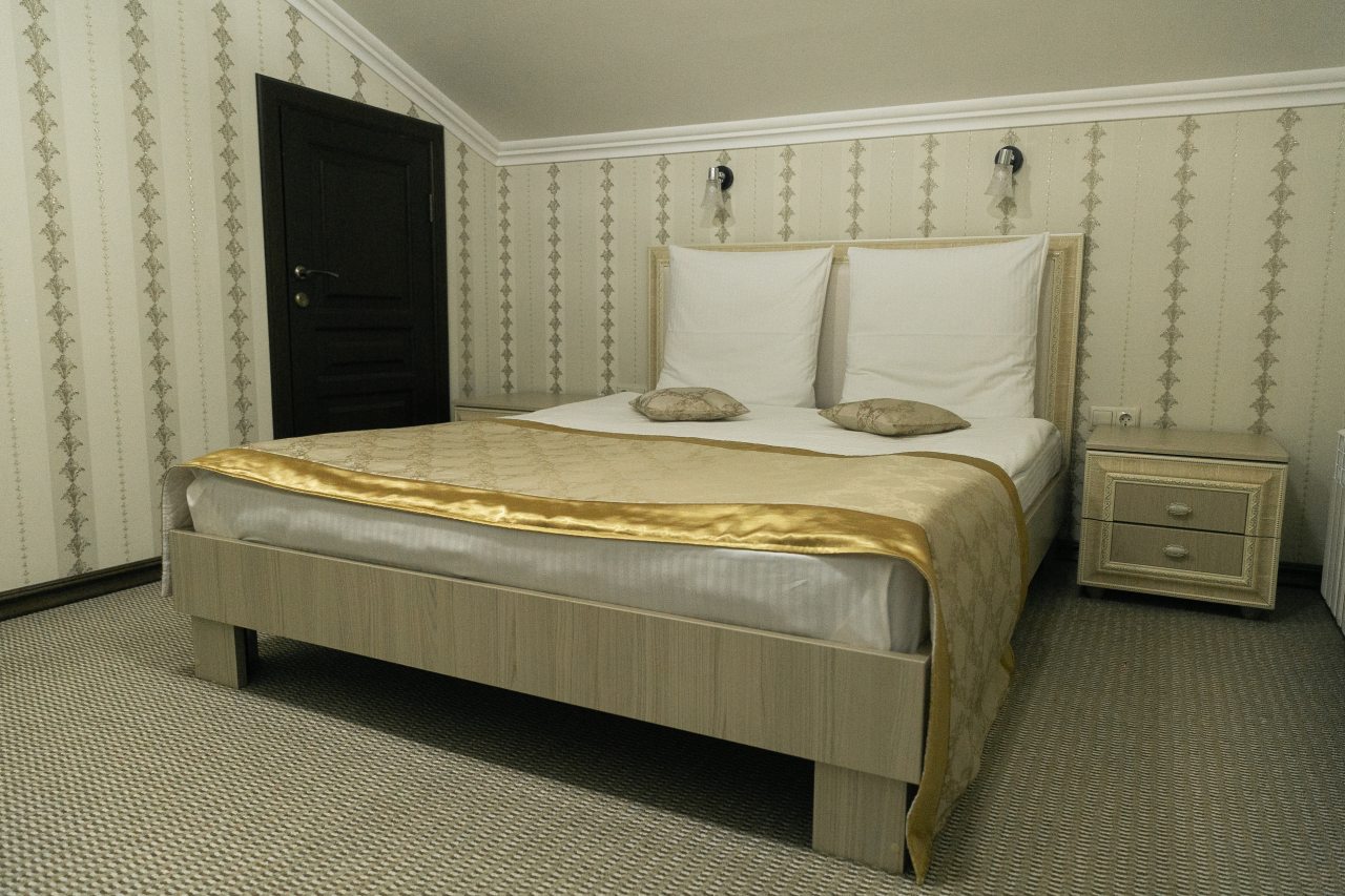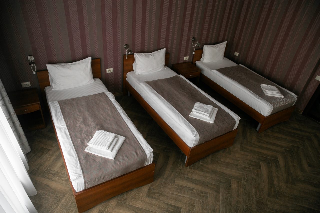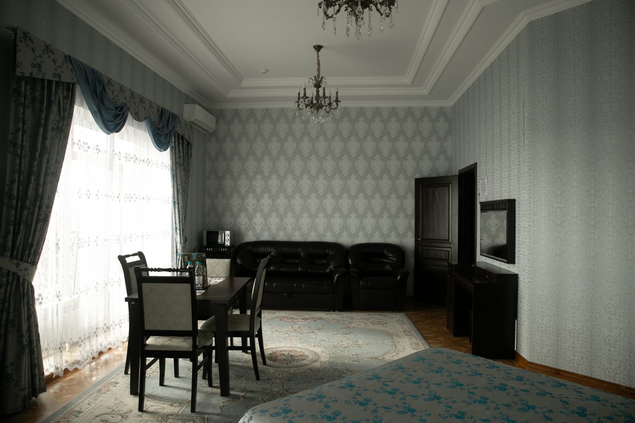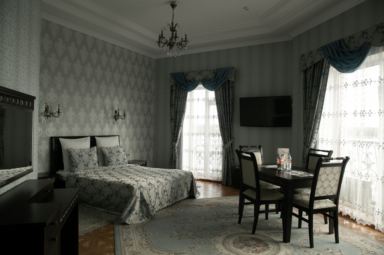 Каждый номер оборудован удобной для сна кроватью, вместительным шкафом, кондиционером, телевизором и другой необходимой для проживания качественной мебелью и техникой. В санузле вас ожидает набор белоснежных полотенец и халатов, а также различные туалетно-гигиенические принадлежности.