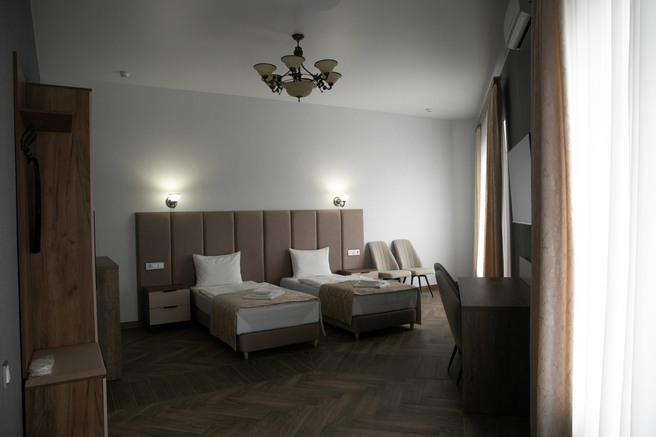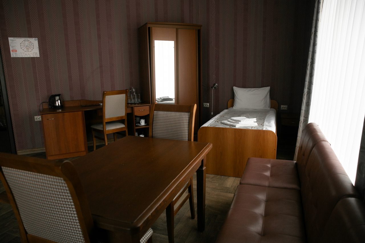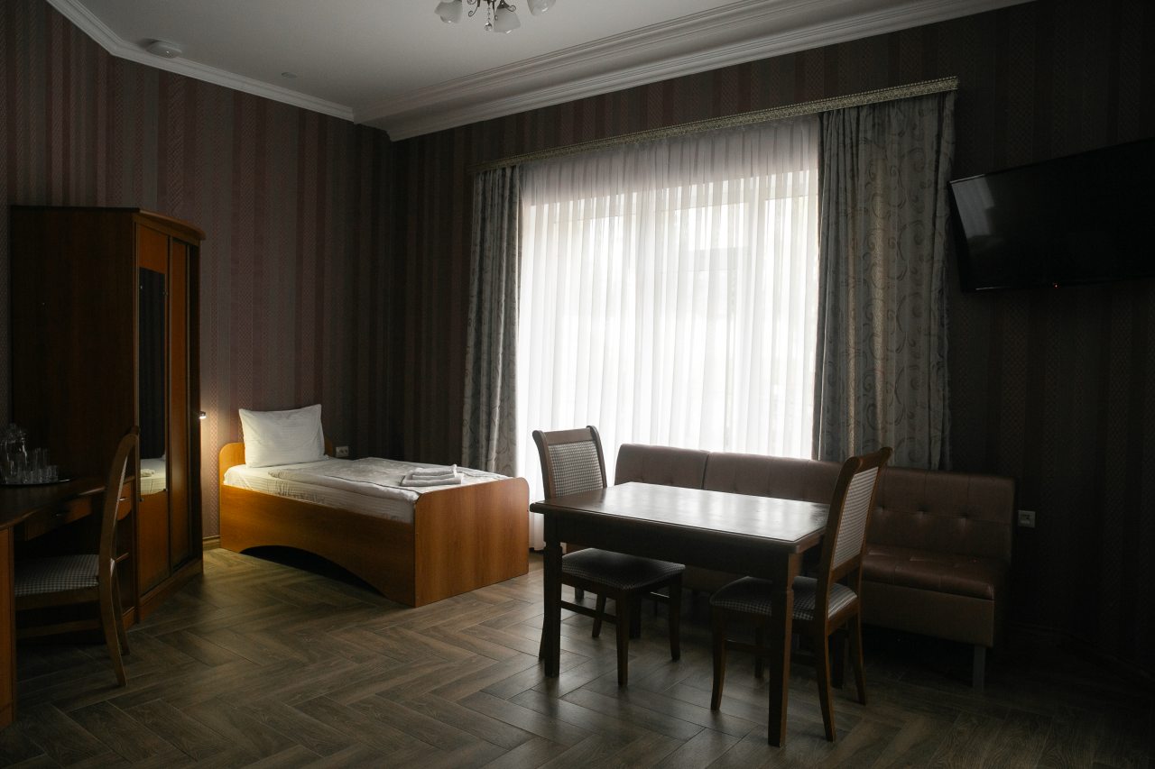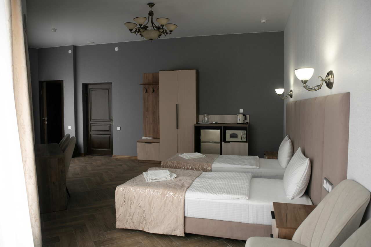 Каждый номер оборудован удобной для сна кроватью, вместительным шкафом, кондиционером, телевизором и другой необходимой для проживания качественной мебелью и техникой. В санузле вас ожидает набор белоснежных полотенец и халатов, а также различные туалетно-гигиенические принадлежности.