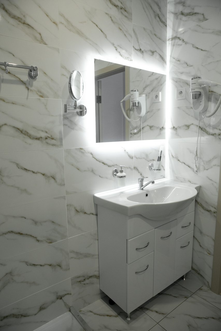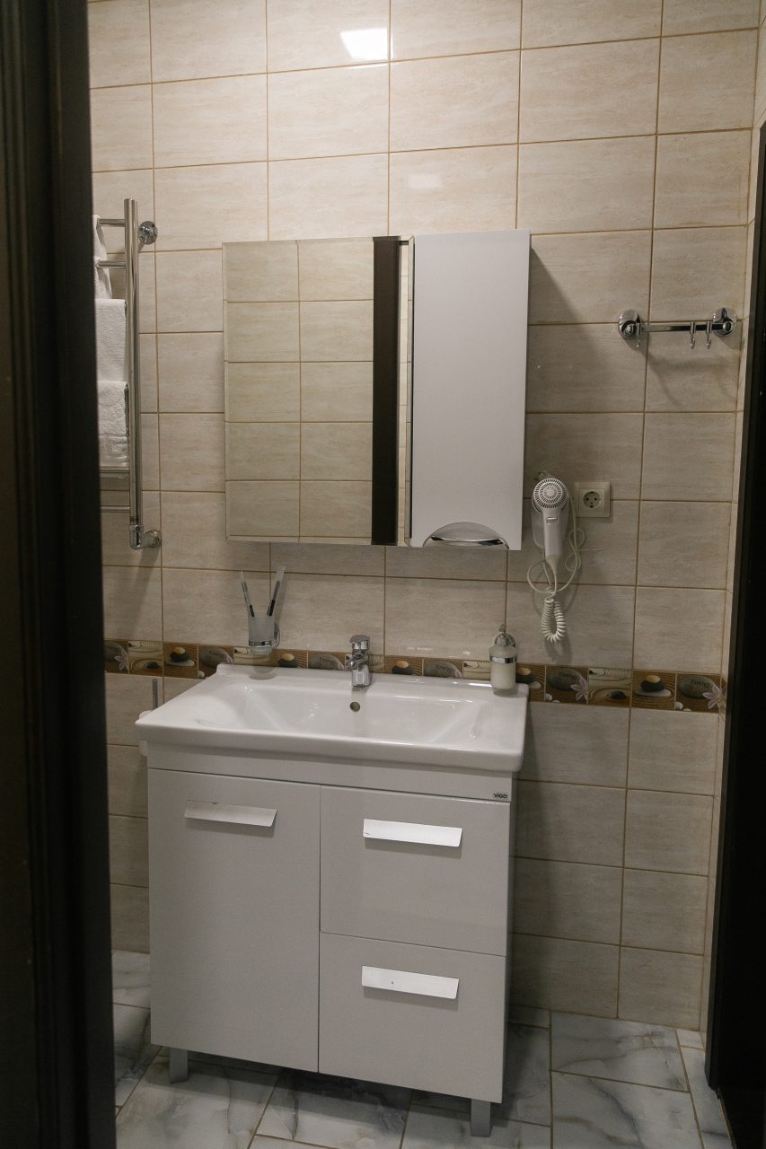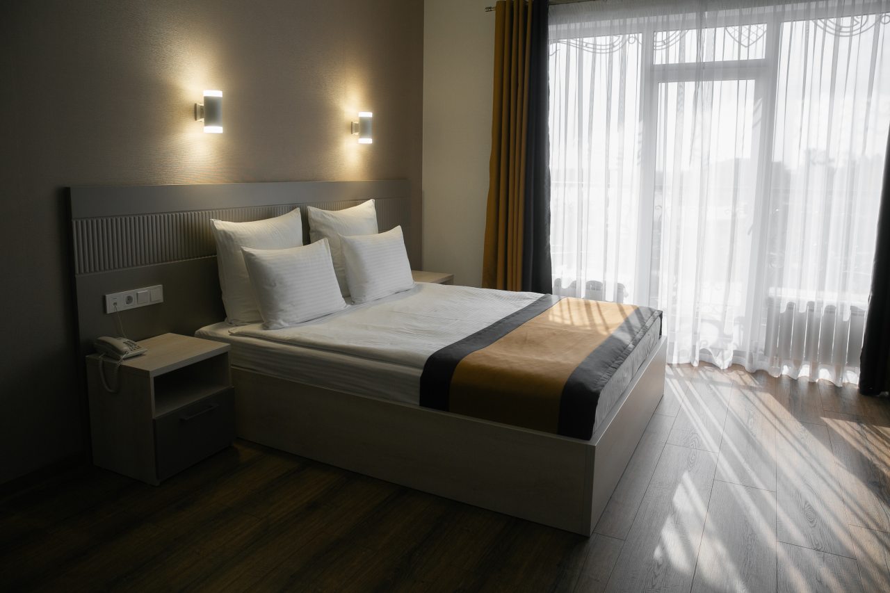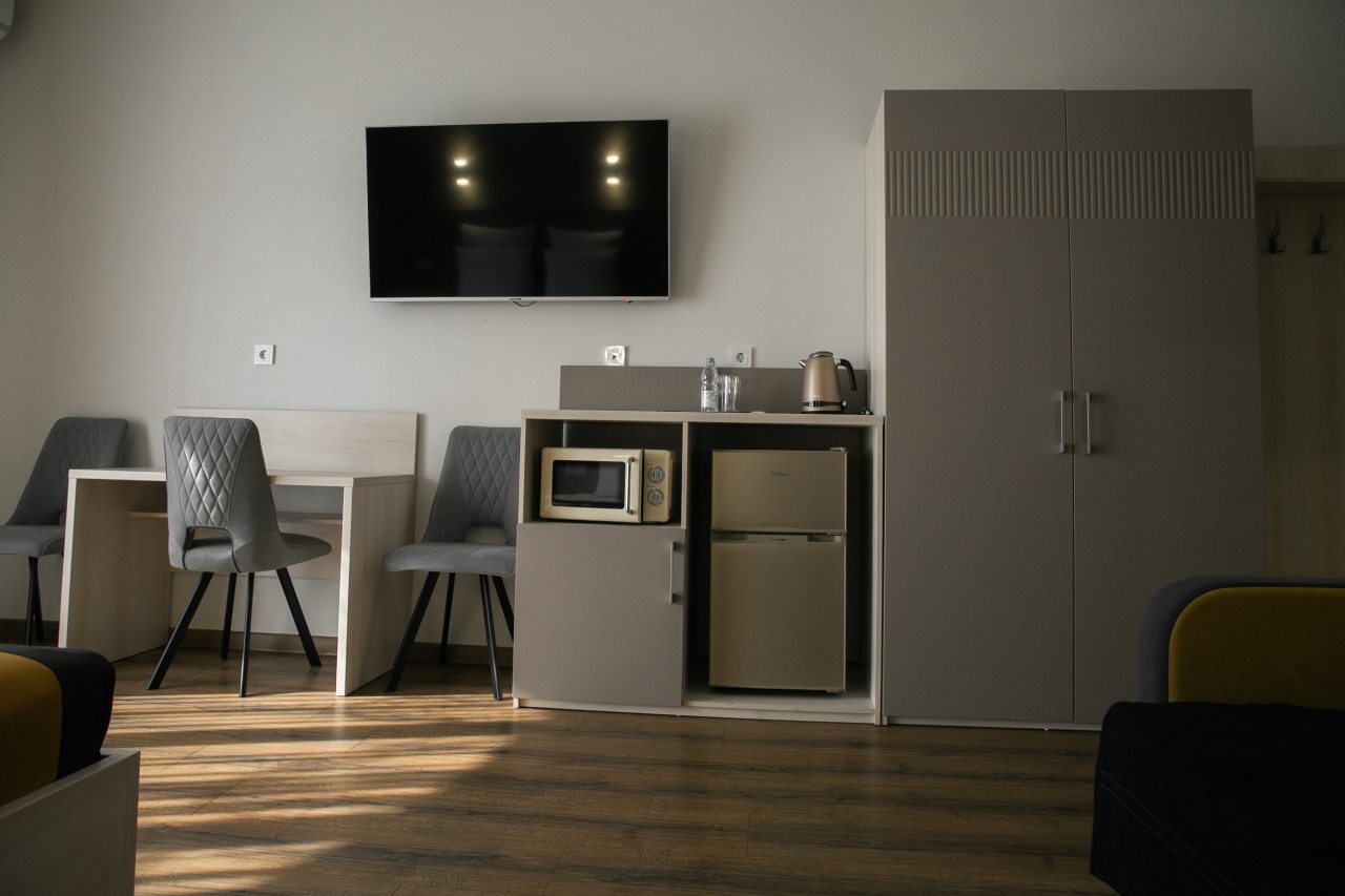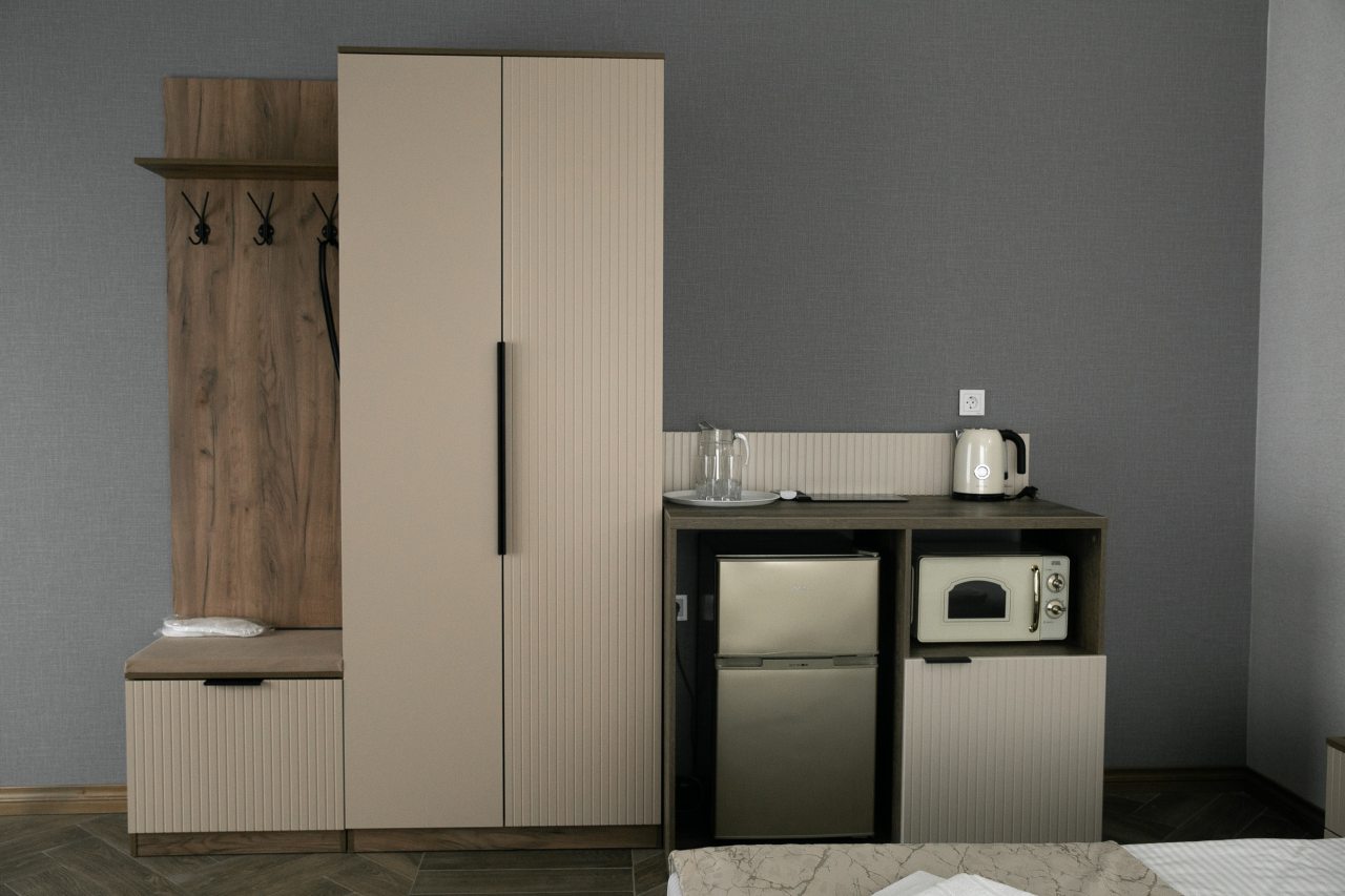 Каждый номер оборудован удобной для сна кроватью, вместительным шкафом, кондиционером, телевизором и другой необходимой для проживания качественной мебелью и техникой. В санузле вас ожидает набор белоснежных полотенец и халатов, а также различные туалетно-гигиенические принадлежности.