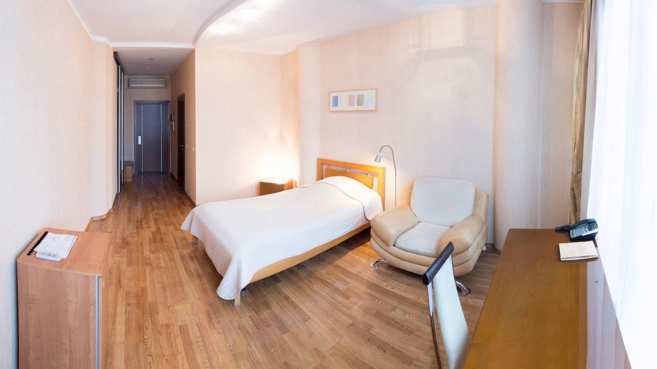 У нас в этом отеле проводилась конференция, помещения большое, интернет работал без перебоев. Ночевала в одноместном стандарте, очень просторный номер с мягкой кроватью и креслом, письменным столом и собственной ванной. Вечером спускалась в бар, хороший ассортимент напитков и приятная атмосфера.