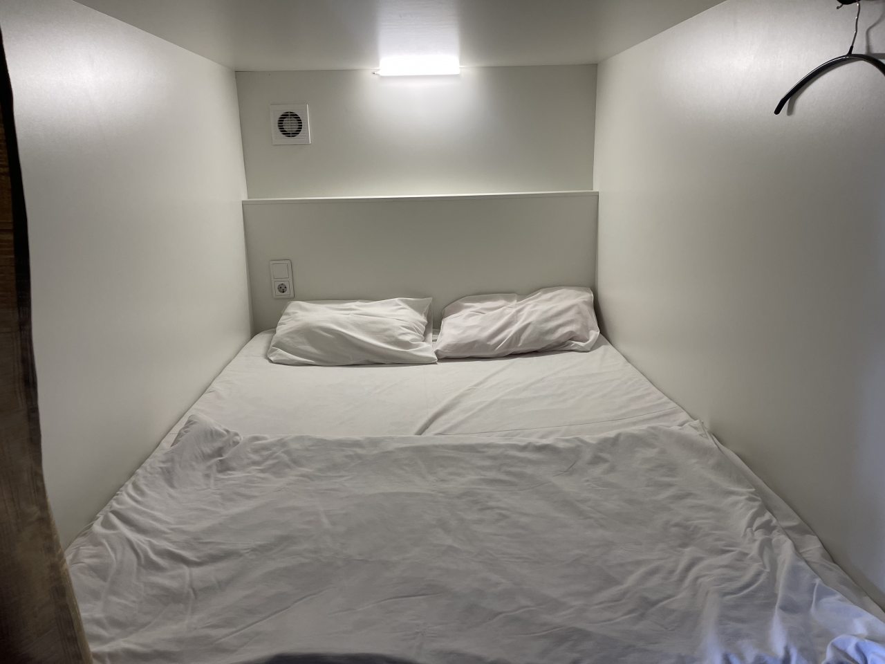Все супер, отличное расположение, тихо, уютно, задумка с капсулами просто закрылся шторкой и ты как в коконе.Есть все необходимое для удобства проживания теперь помтоя