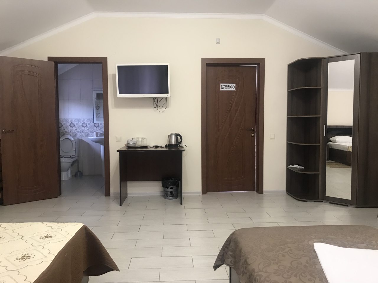 В этом гостевом доме номера предлагаются по приемлемой цене. Нужно было остановиться на пару дней, интересовал какой-то бюджетный вариант. Здесь был именно одноместный номер с базовым набором – телевизор, кровать, шкаф, санузел. Цена меня устроила, расположение тоже. Плюс для машины предусмотрена парковка.