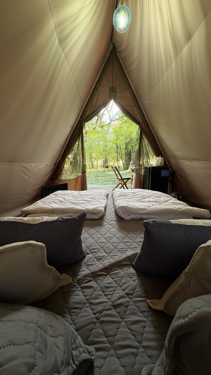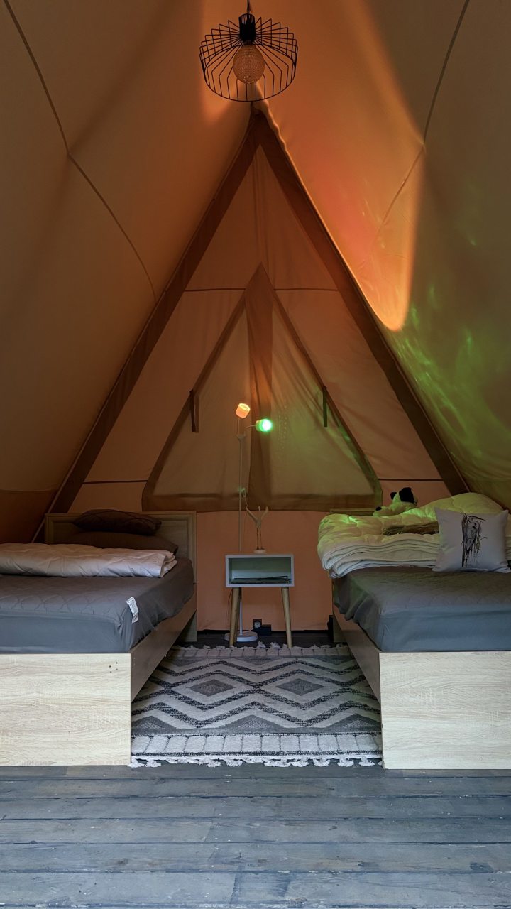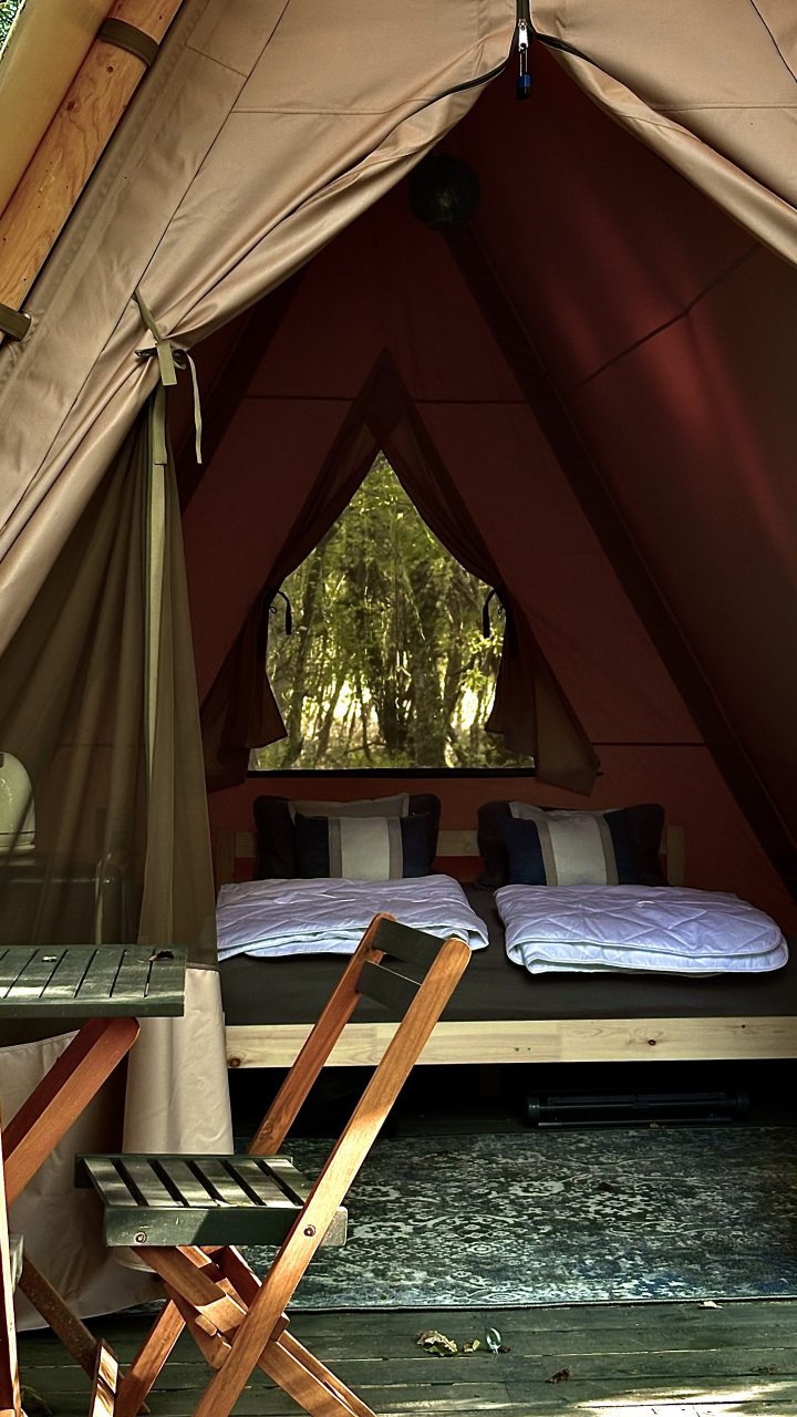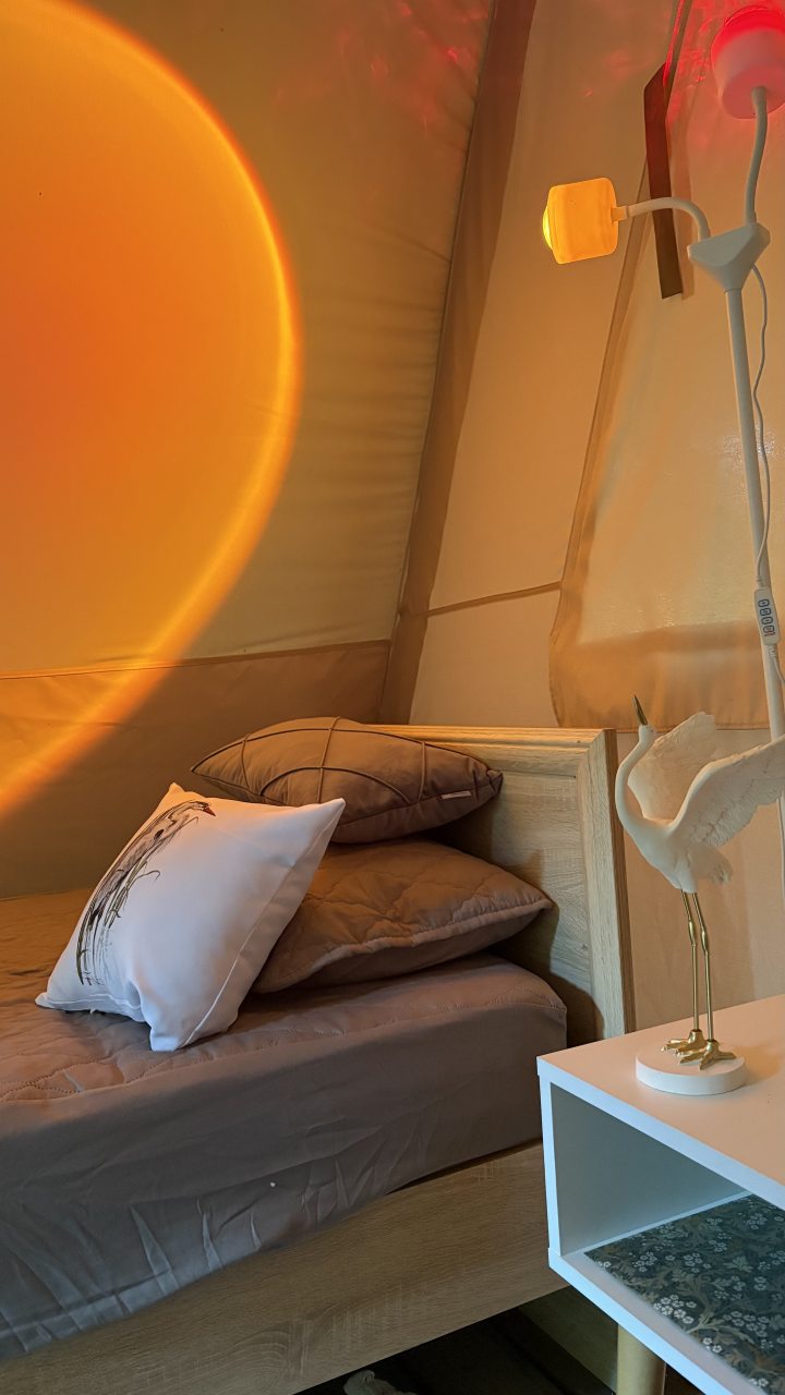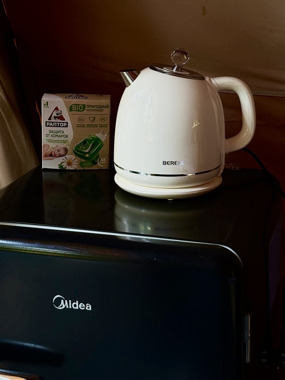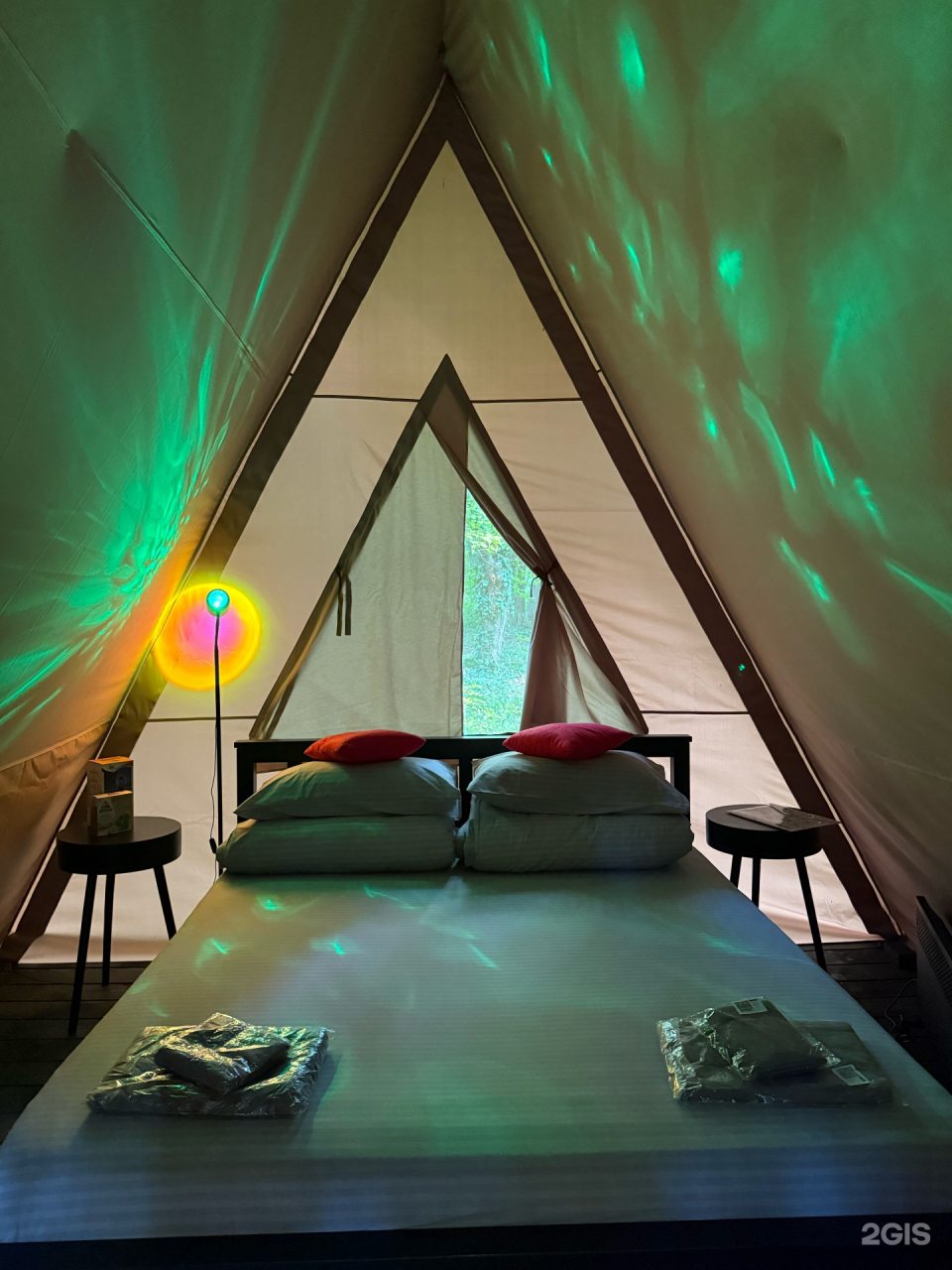 В каждой палатке предусмотрена раскладушка, которую можно использовать как дополнительное спальное место — например, для ребёнка или ещё одного взрослого гостя.