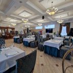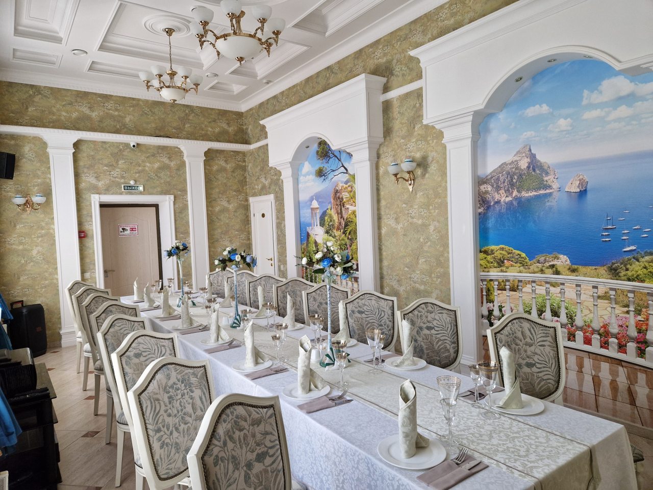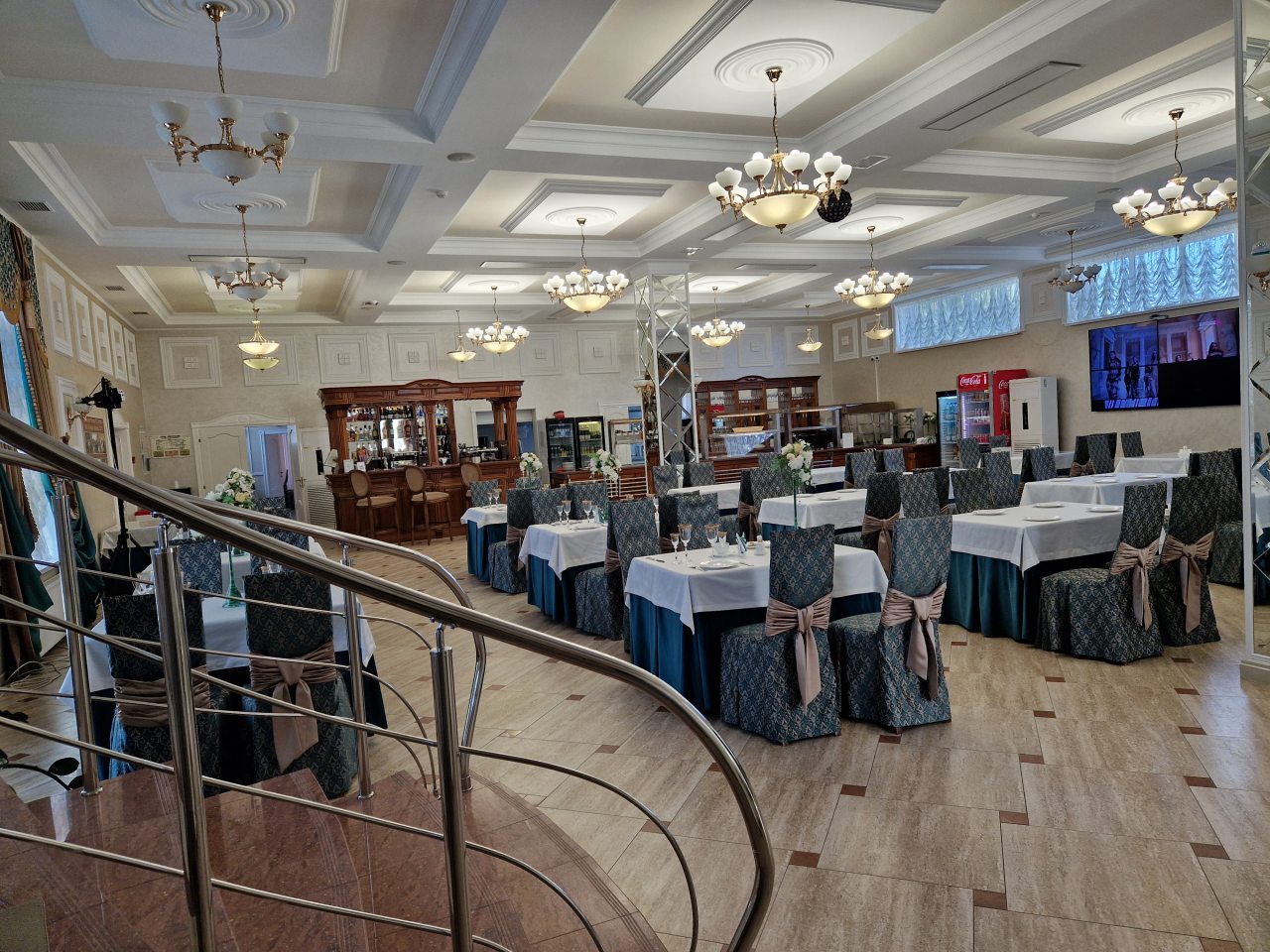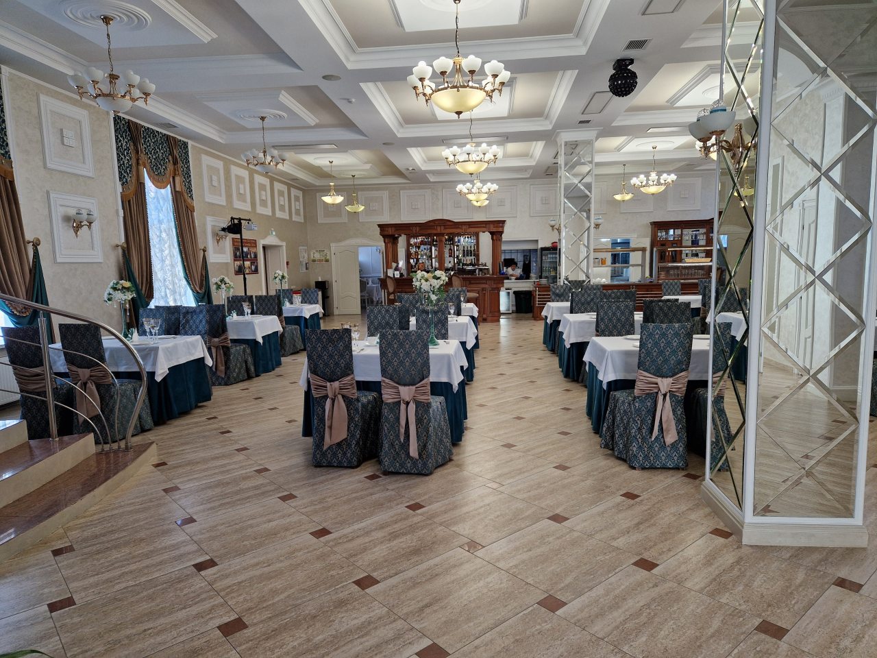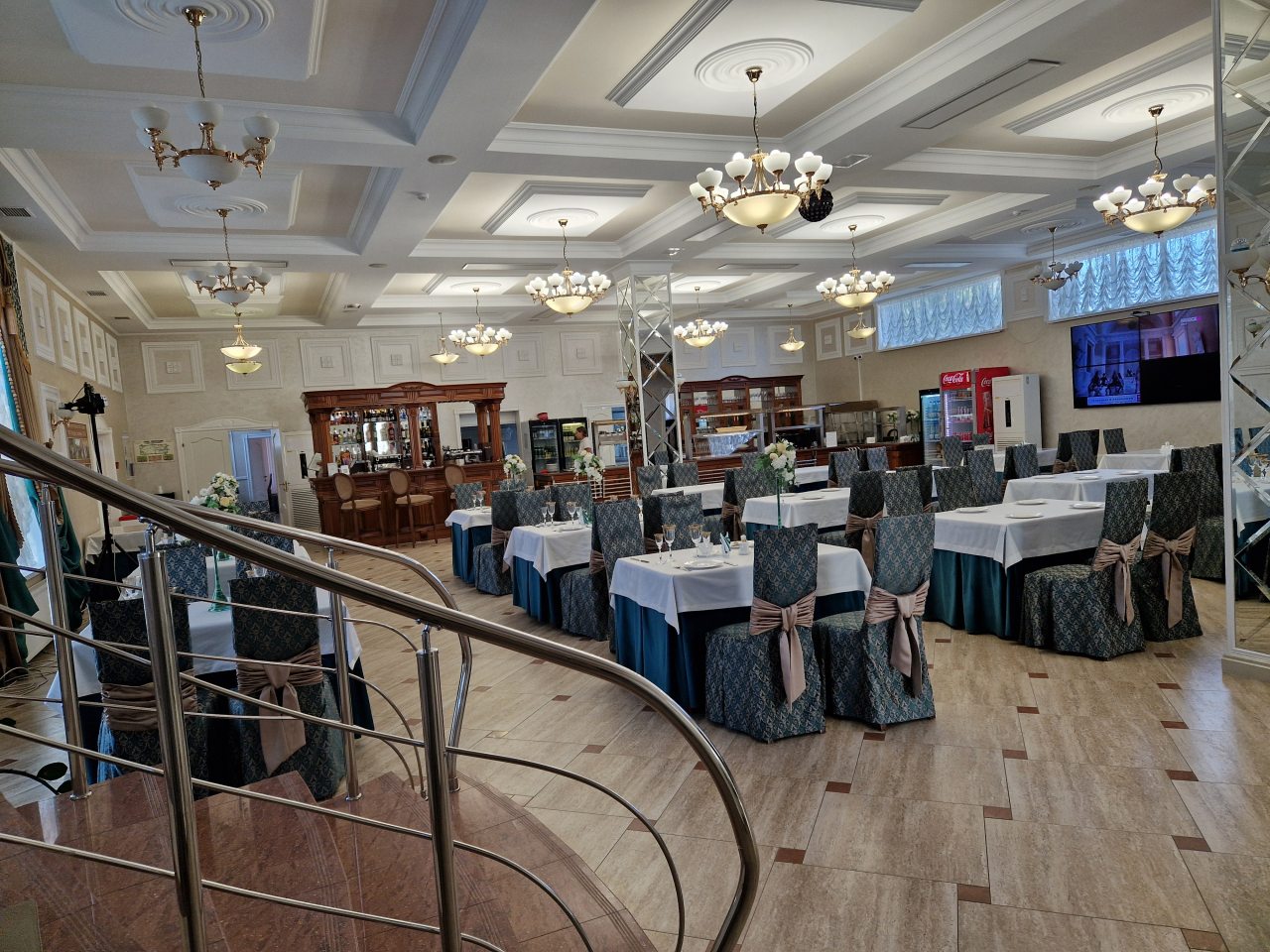 При отеле работает ресторан, где можно не только вкусно и сытно поесть, но и провести торжественное мероприятие.