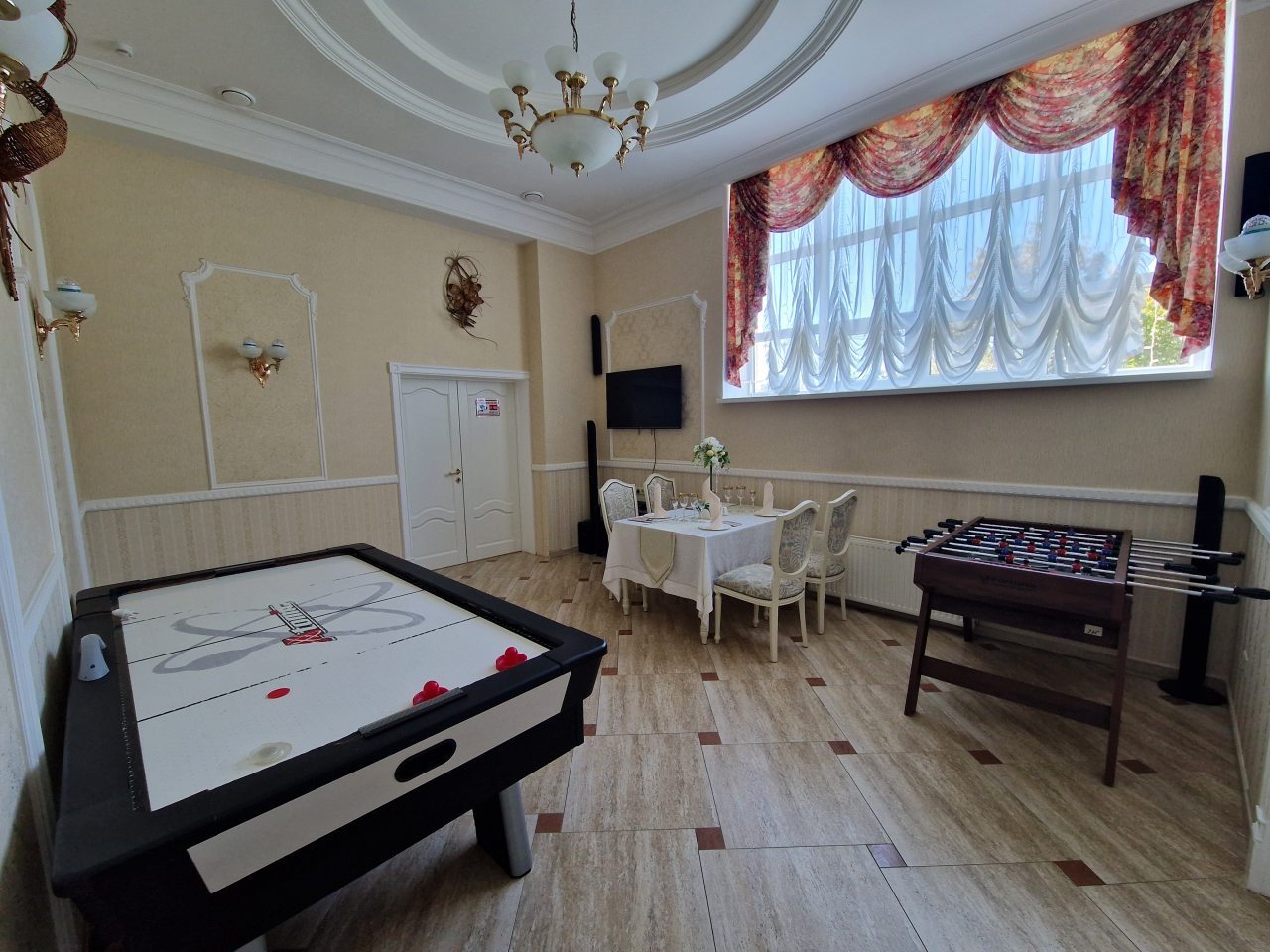 Прекрасный отель с хорошим сервисом. Мы с мужем отмечали юбилей и остались довольны как банкетным залом, так и едой. Оформление было очень красивое. Номер убрали качественно. Матрас комфортный для сна. Понравилось, что территория у отеля красивая и ухоженная. Есть развлечения на любой вкус. Поиграли несколько раз в аэрохоккей. В общем эмоции и впечатления остались только положительные. Благодарим персонал!