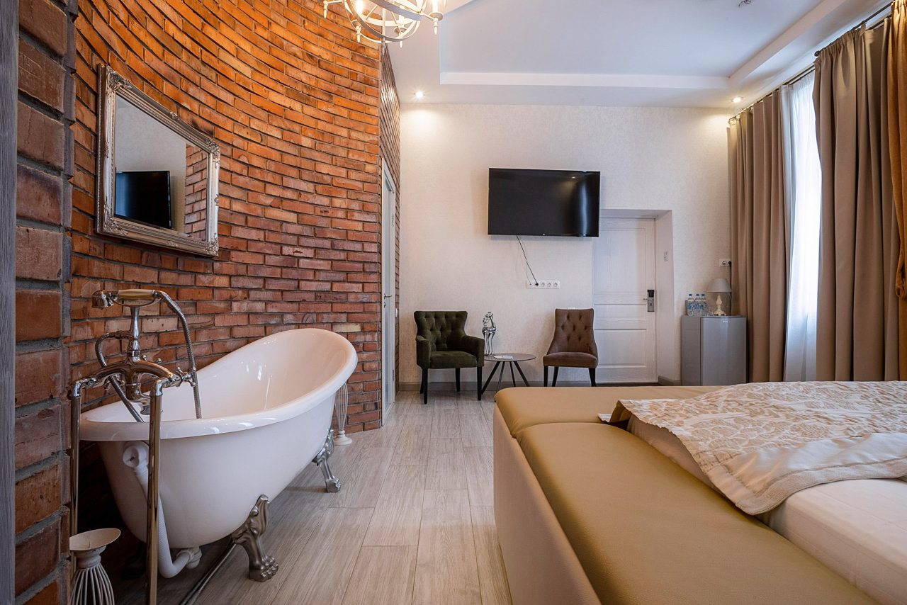 Отель располагает отличным сервисом обслуживания. Персонал внимателен и квалифицированный. Номер роскошный, просторный, красивый дизайн. Превосходная кухня ресторана. Место расположения тоже понравилось. Цены вполне доступные. Абсолютно нет минусов.