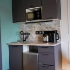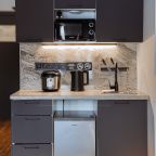 Некоторые номера оснащены кухонной зоной: микроволновая печь, холодильник, чайник, мультиварка. Также в шаговой доступности есть множество заведений питания, где можно как вкусно перекусить, так и сытно пообедать.