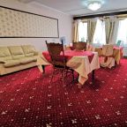 В гостинице нет своего кафе, питаться придется в соседних ресторанчиках. Хотя на этажах есть комнаты со столами, микроволновой печкой и чайником. Похоже, их используют для питания вахтовых рабочих, которых поселяют в гостиничные номера. Эти соседи могут быть немного шумными.