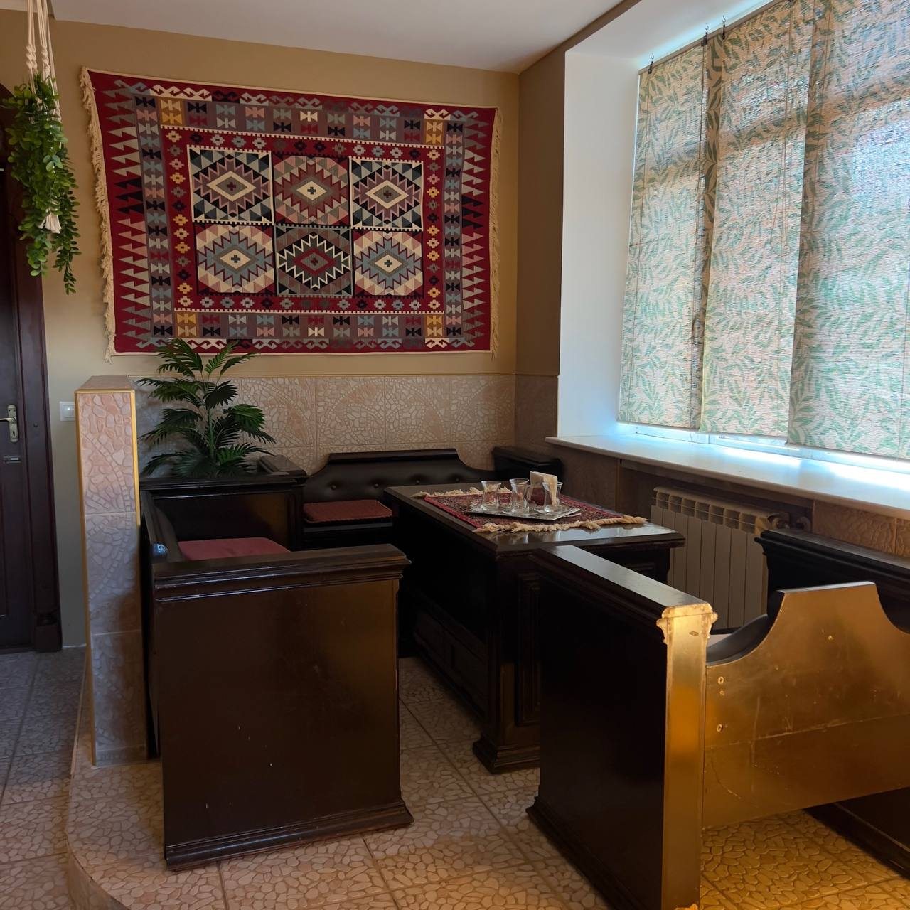 На территории работает собственный ресторан, где готовятся блюда не только национальной, но и европейской кухни. Также представлен широкий ассортимент напитков.