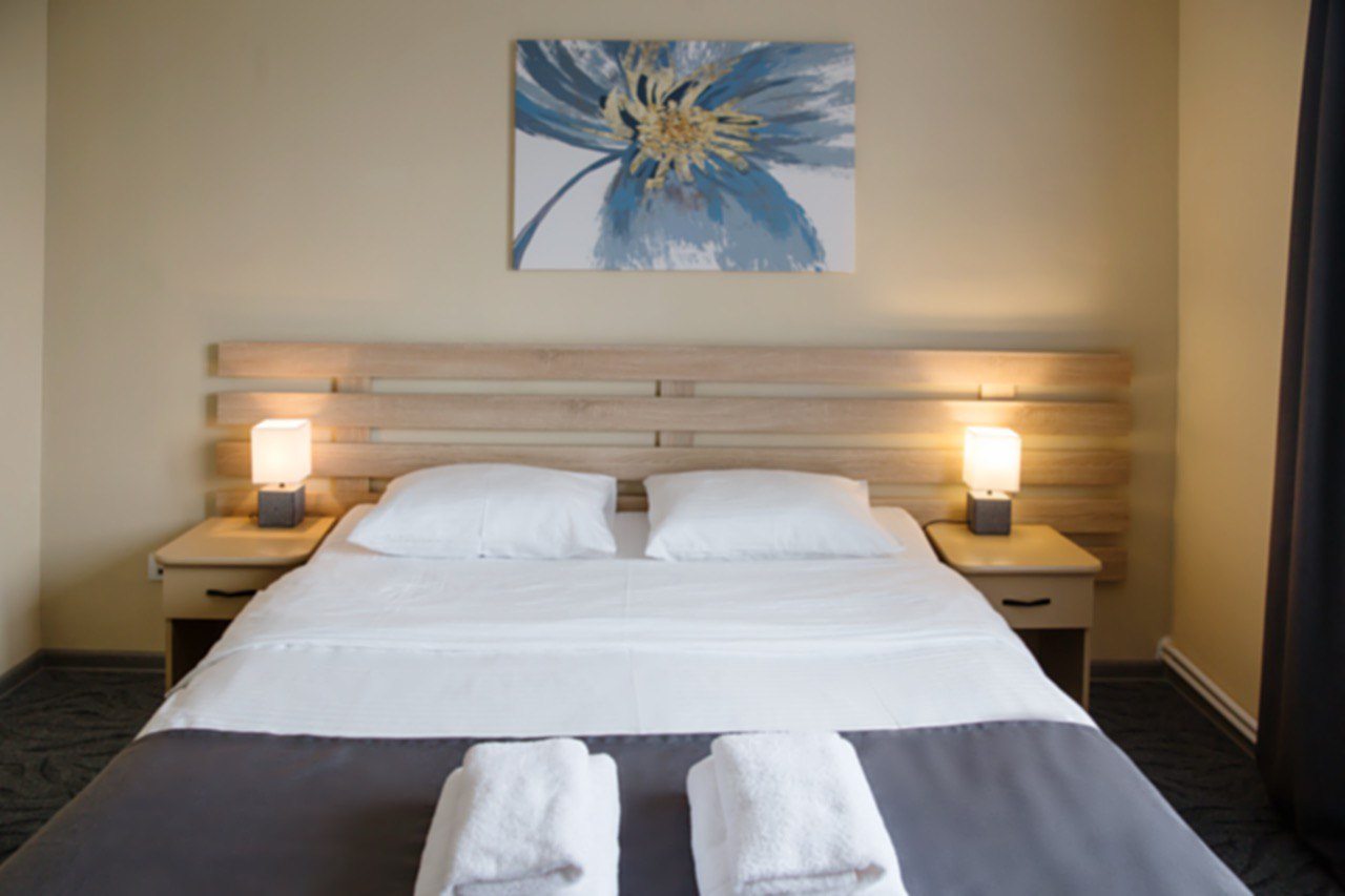Просторные номера обустроены всем необходимым для отдыха и проживания. Здесь есть удобные кровати, светильники, а также собственные ванные комнаты с душевой кабиной и феном.