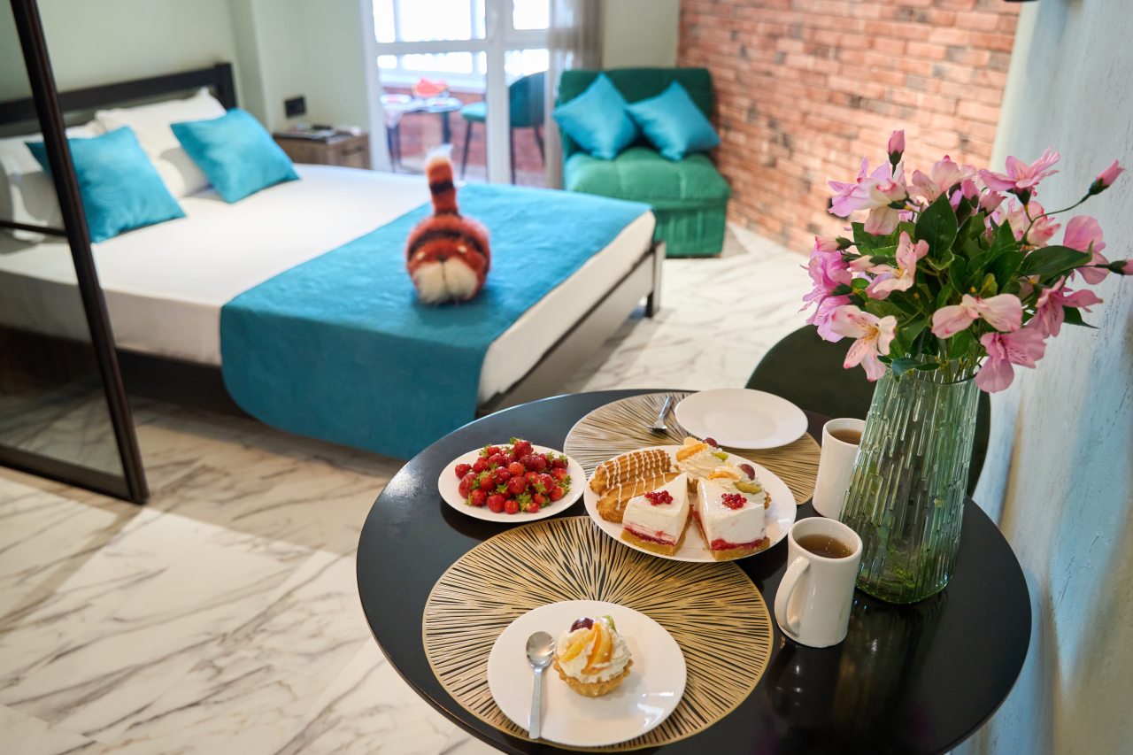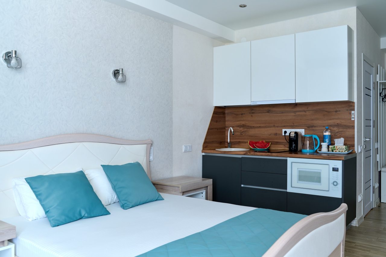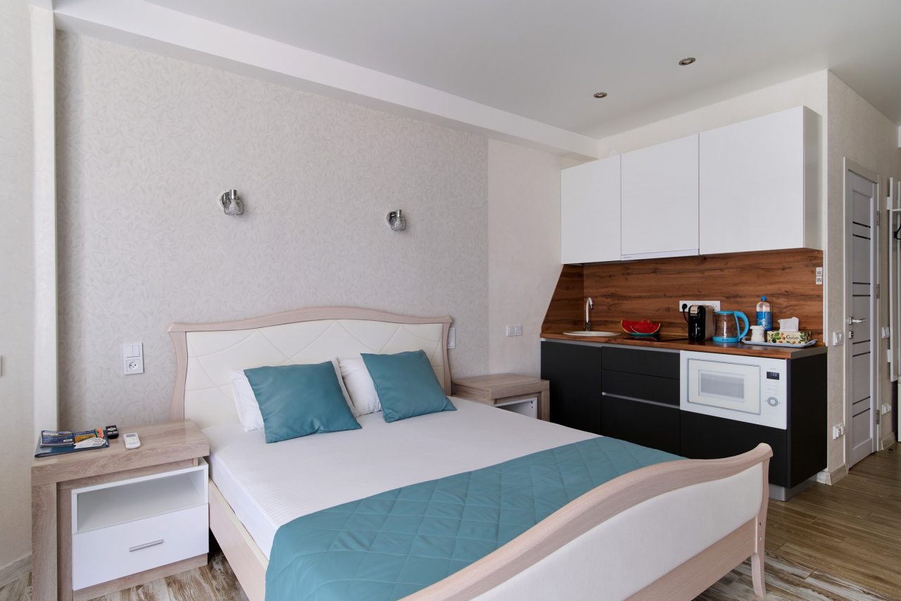 Из недостатков: цена за сутки, равная 7000 руб., черезчур завышена. Номер в данном отеле ну никак не стоит таких денег. Из минусов: бухта красивая, спору нет, но зайти в море без спец.обуви - невозможно. Берег сильно каменистый, заходя в воду -испытываешь адскую боль. Сам номер на четвёрку. Уборка средняя, за данную стоимость есть только тапочки и шампунь. Нет ни халатов, ни средств гигиены... Заявленные завтраки, входящие в стоимость - это грусть! Столы, стоящие на улице - грязные, пыльные, после дождя - никто не вытирает! Пришлось попросить, вытерли, а то, что скамейки у столов мокрые и на них присесть невозможно, на это внимание вообще не обращают. Это ваша проблема, вам же присесть за стол надо...Завтраки ужасные. Сначала вам наливают кофе, потом подают холодные блины с сильно засушенными краями и только через 13 минут, когда остыл даже кофе - Вас зовут забрать амлет... вопрос: почему так, а не наоборот??? Блины просили заново погреть. Итог, простите, сама больше никогда не приеду и не посоветую...
