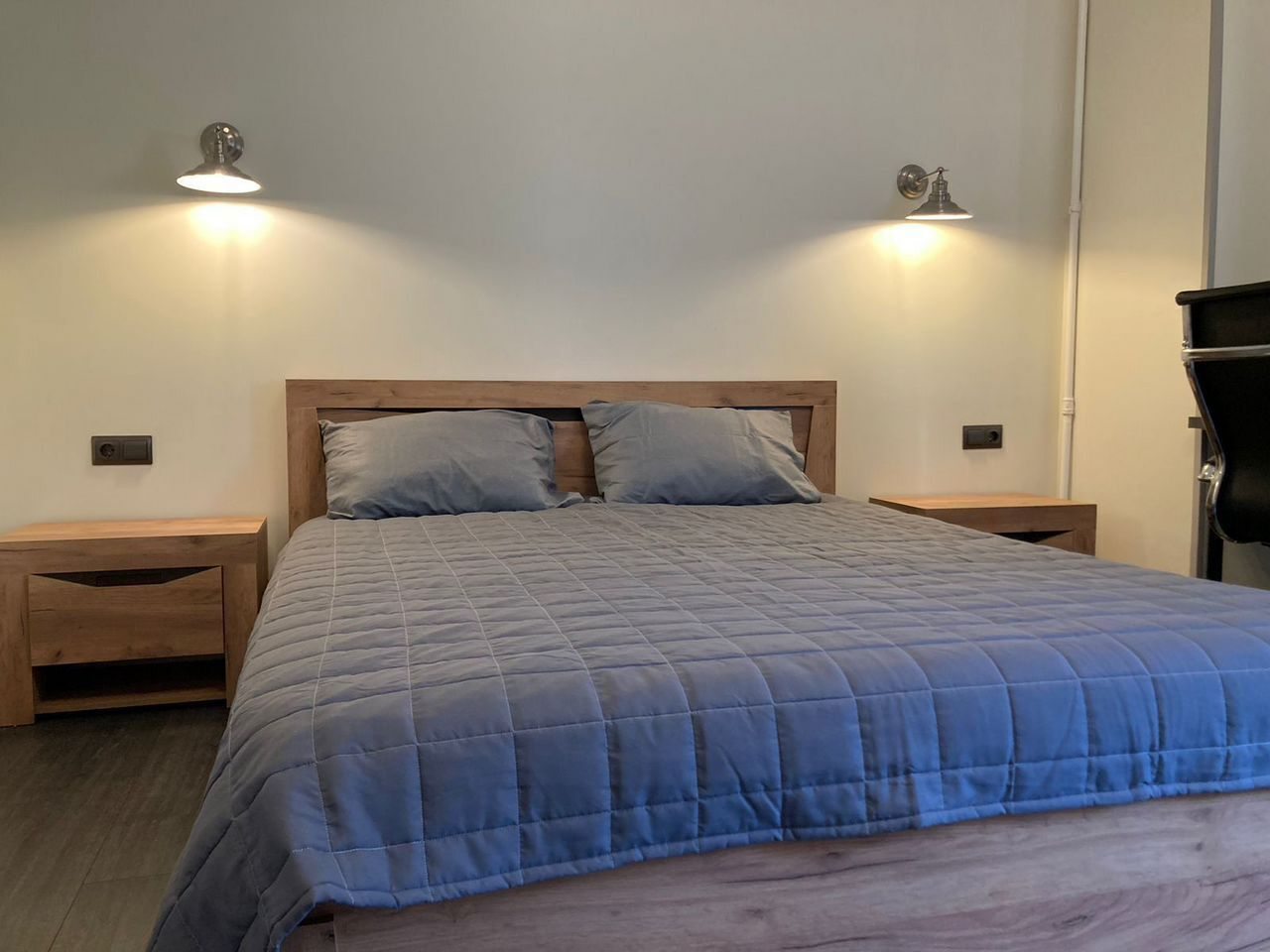 Уютная квартира оборудована всем необходимым для комфортабельного пребывания и отдыха, например: удобной двуспальной кроватью, wi-fi, комодом, телевизором с кабельным телевидением, прикроватной мебелью, письменным столом, шкафом, прихожей и др. Санузел раздельный и укомплектован гигиеническим душем, средствами личной гигиены, полотенцесушителем, стиральной машиной.