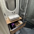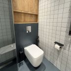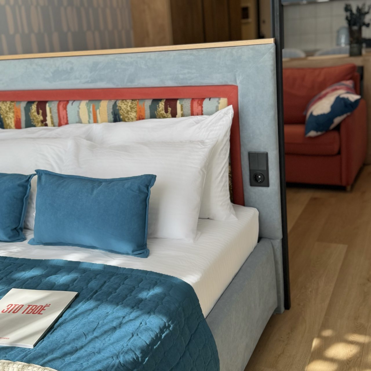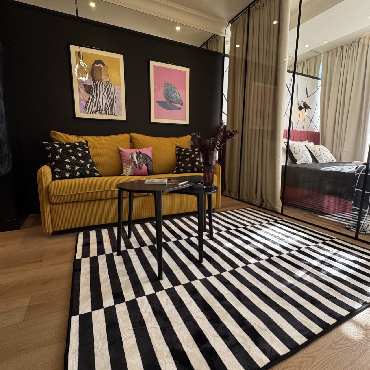 Внутри гостей ожидает стильный дизайн, качественная мебель и техника, включая удобную двуспальную кровать, диван с телевизором, шкаф, разноплановое освещение, санузел с душевой, средствами гигиены, феном и набором полотенец.