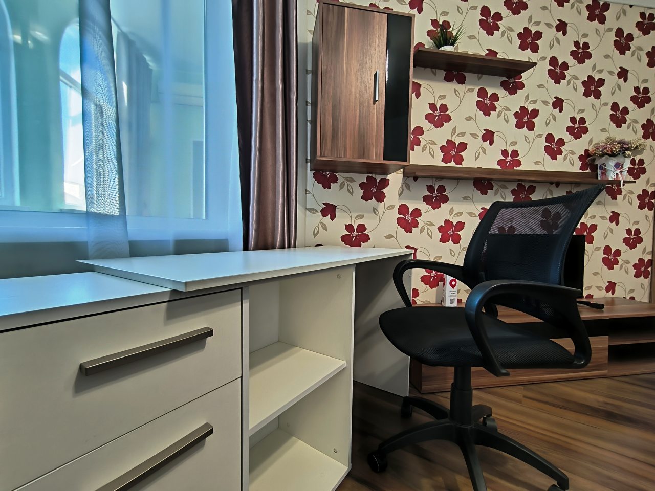 Апартаменты оформлены в классическом стиле интерьера и оснащены: двуспальной кроватью с удобным матрасом и набором постельного белья, кондиционером, мягким диваном, телевизором и письменным стол. В раздельном санузле установлена необходимая сантехника.