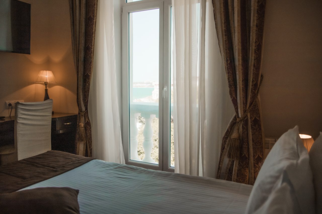 Очень понравился отель. Находится на первой линии рядом с красивой набережной. Здание отеля необыкновенно красивое. Имеется лифт, что очень удобно для доставки тяжёлых чемоданов. Было очень приятно завтракать с видом на набережную. Количество блюд разнообразное. Большой выбор. Все свежее. В номере убирали каждый день и каждый день меняли полотенца и давали бутылки с водой и пакетики чая. Номер был комфортабельный. В номере холодильник, вся необходимая мебель, чайник, сейф. Мы остались очень довольны отелем и отдыхом. Обслуживание на высоте