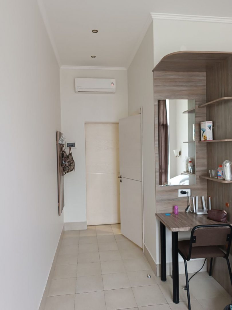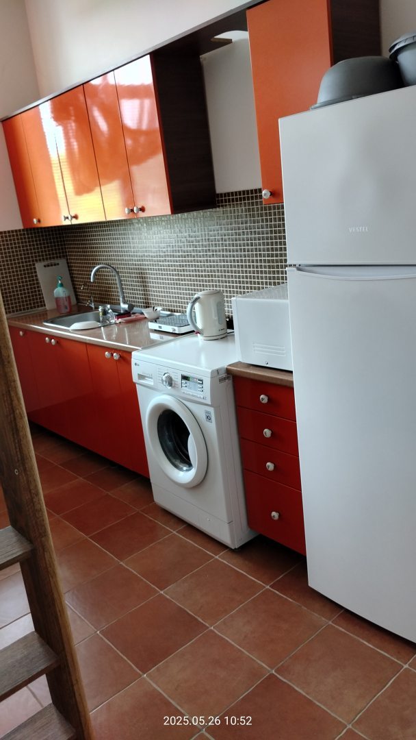 Наш номер на 2 этаже. Мне очень понравилось, что есть общая зона, где есть стиральная машинка, порошок, большой холодильник, чайник, микроволновая печь, посуда, приборы , гладильная доска, современный утюг
