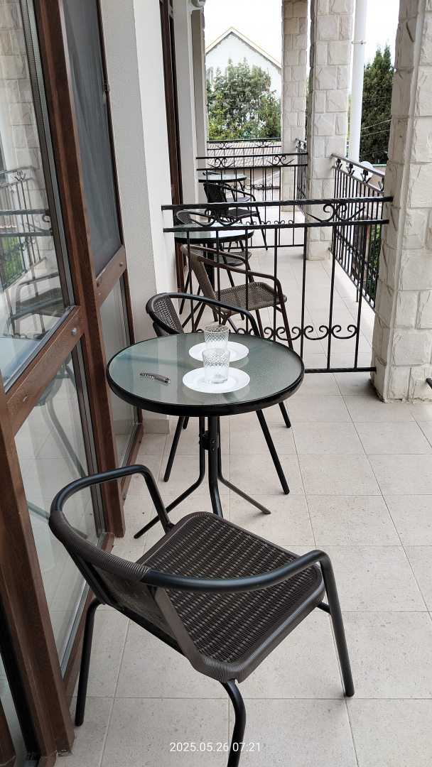 На каждом балконе есть сушилка Столик и два стула. Приятно посидеть утром или вечером, поесть фрукты или почитать книгу