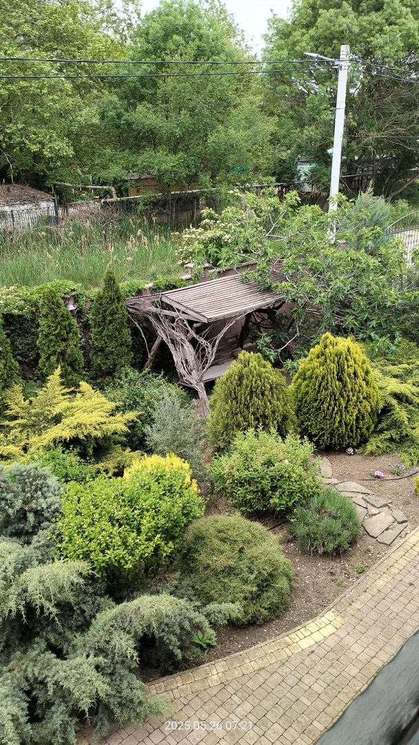 Ухоженная, «зеленая», много разных растений. Есть беседки, качель, зона для шашлыков, барбекю. Баня. Есть батут для детей