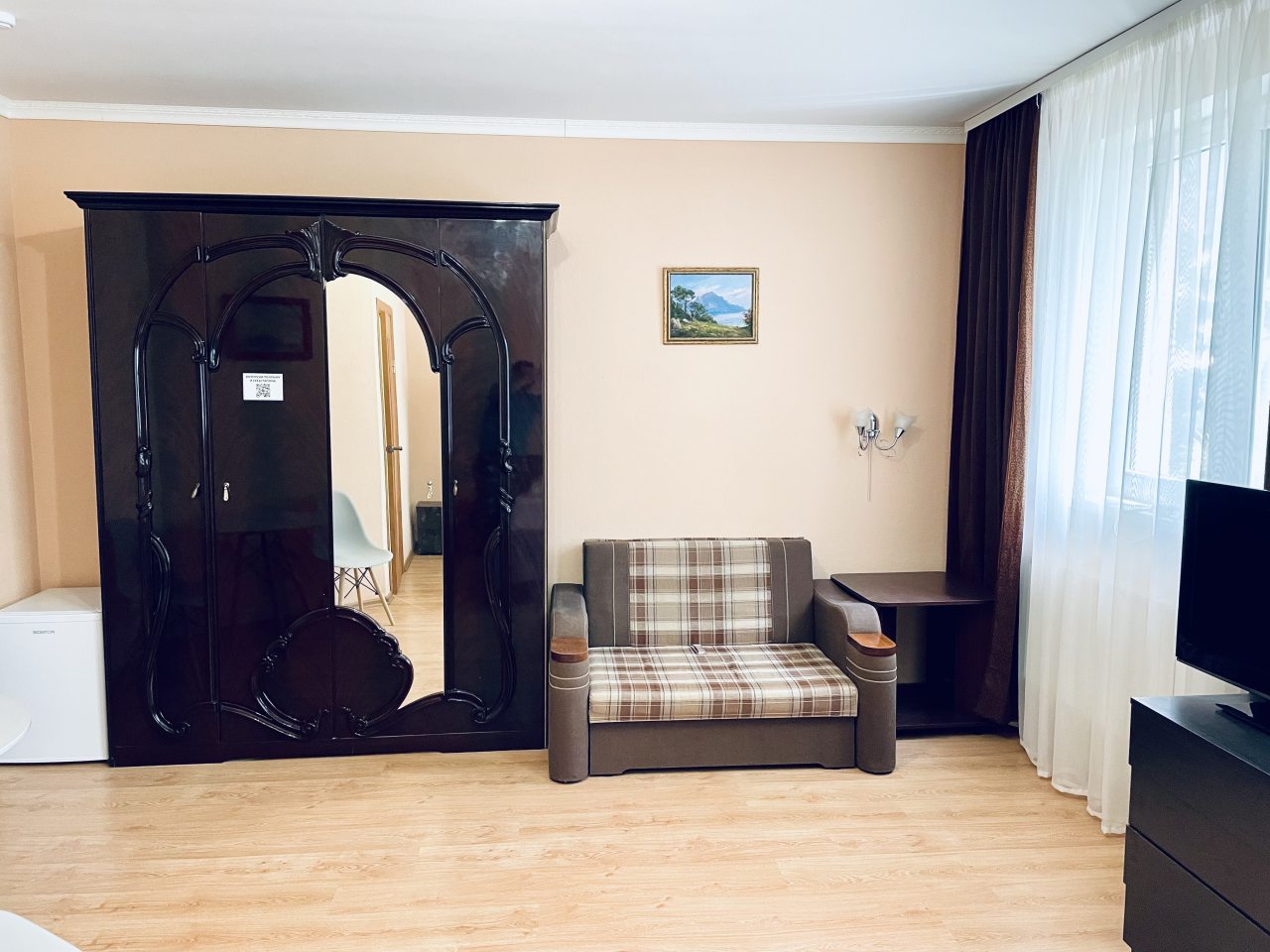 Гостиница находится недалеко от оживленного района. Это современный жилой дом. Сами апартаменты представлены в виде студии, есть мебель, ванная комната. Большое преимущество, что тут проводят регулярно уборку. Я приеду в Липецк именно сюда, не вижу смысла искать другой вариант.