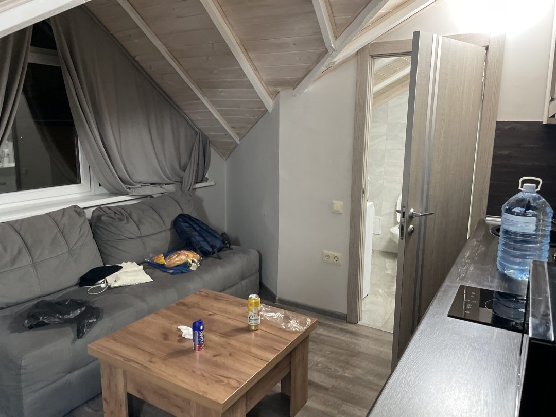 Большой номер 307,в другом здании. Кухня с конфоркой имеется. + холодильник и стиральная машинка. Кровать большая. (Единственное,на что внимание не обращал, так это из окна сгоревшая крыша соседнего дома). А так,покатит все понравилось. Вниз,спускаясь на пригорке кафешка отличная с хорошим кофе и оптимальным ценником. Магазины тоже рядом в пределах квартала имеются+ столовая «Ложки» понравилась (не далеко находится) готовят вкусно и ценник не кусается