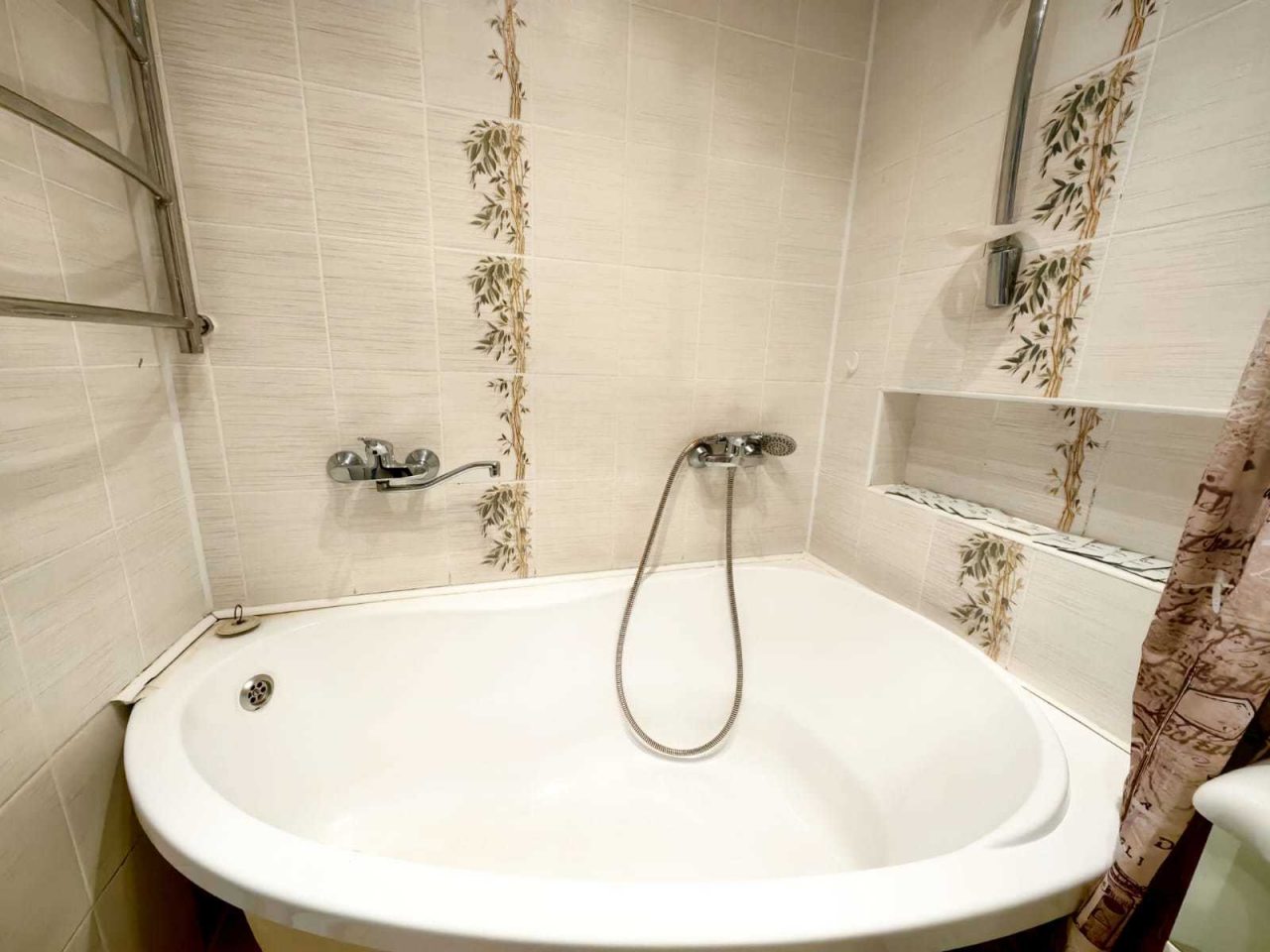 Хорошая квартира. Находится в центре города. Метраж отличный, много места, чувствуешь себя здесь свободно. Оснащение отличное, есть все, что может потребоваться на отдыхе. Кровать была удобная. Постельное белье предоставили свежее и чистое. Матрас хороший. В ванной комнате установлена сантехника, которая работала исправлено. Разводов и плесени нигде не было.