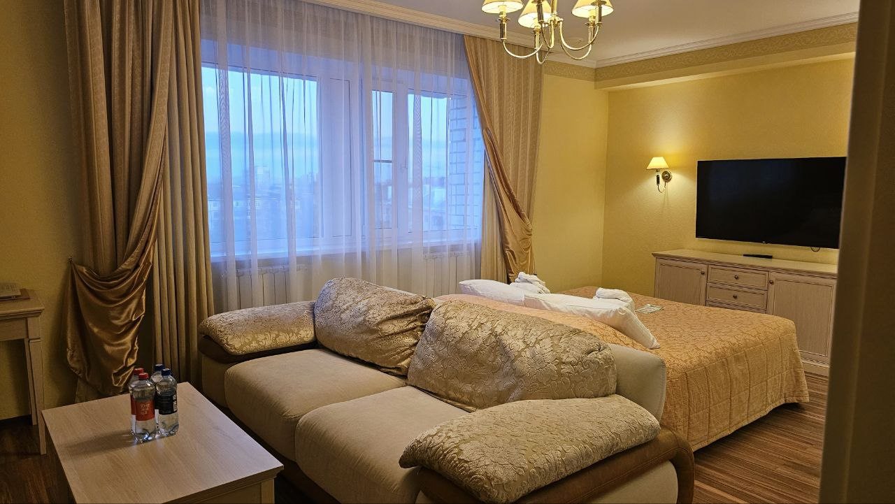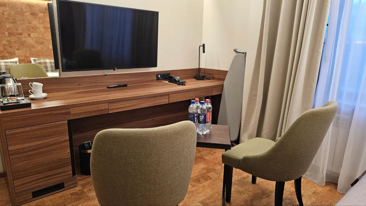 Отличная гостиница, меня привлекли комфортабельные условия для проживания, в номере имелась гостиная зона, телевизор, электрический чайник, мини-бар и кондиционер, а также в ванной комнате можно было воспользоваться средствами для гигиены.