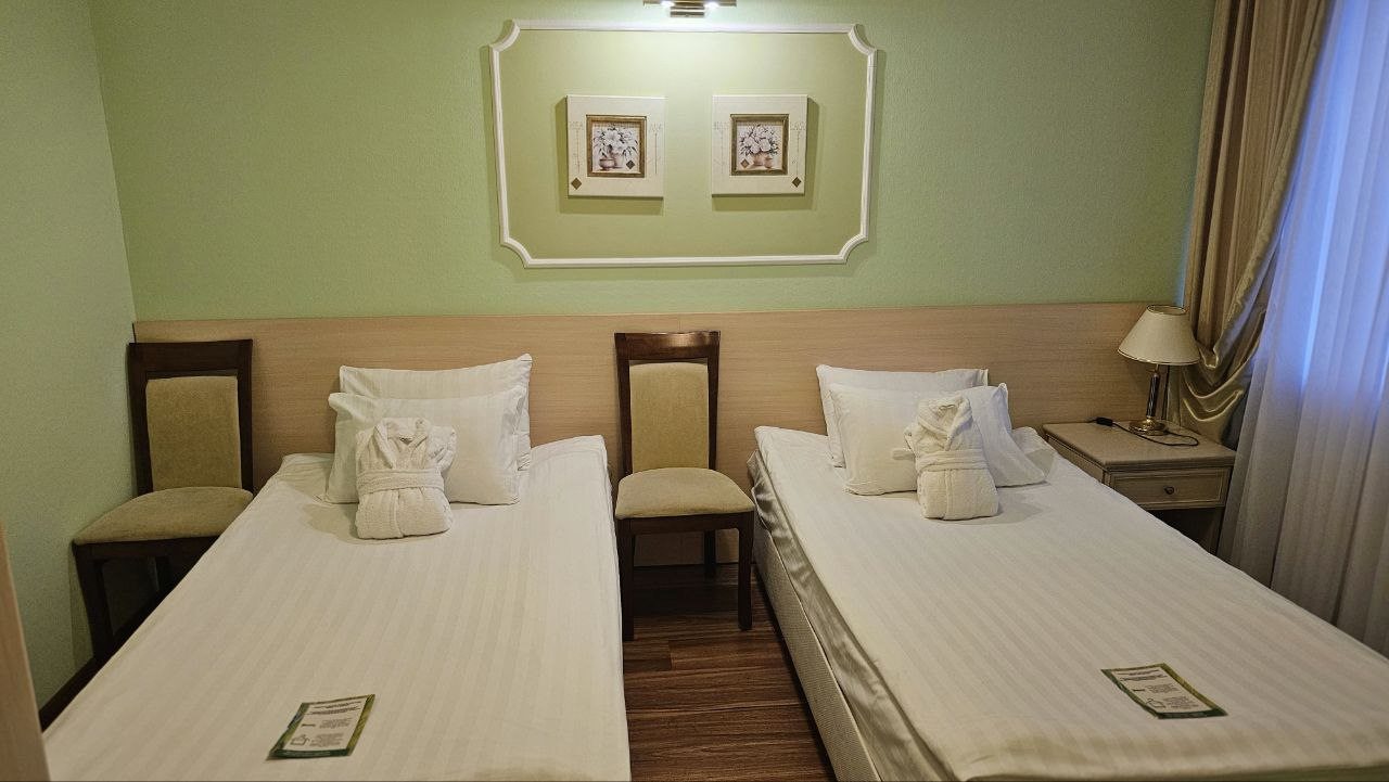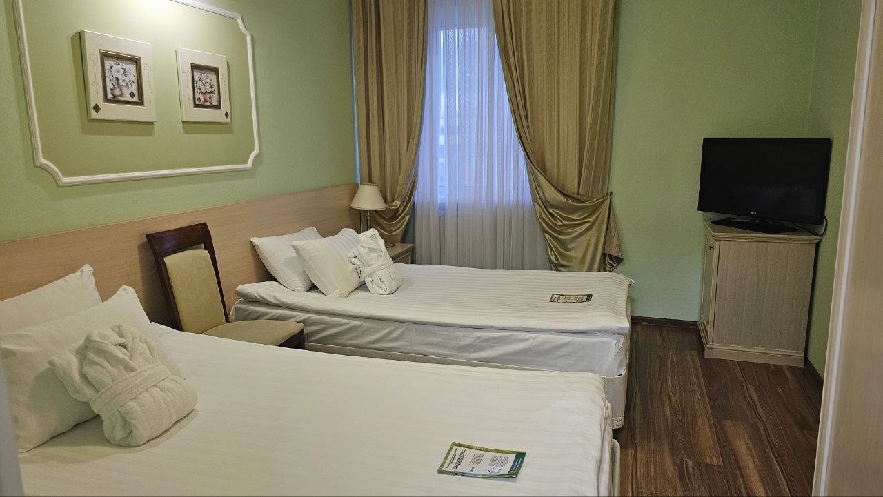 Гостиница находится в самом центре города, есть остановки общественного транспорта – удобно добираться в любую точку города. Персонал очень гостеприимный – неоднократно обращался по мелочам – помогали. Особенно спасли ночью с таблеткой от головной боли.