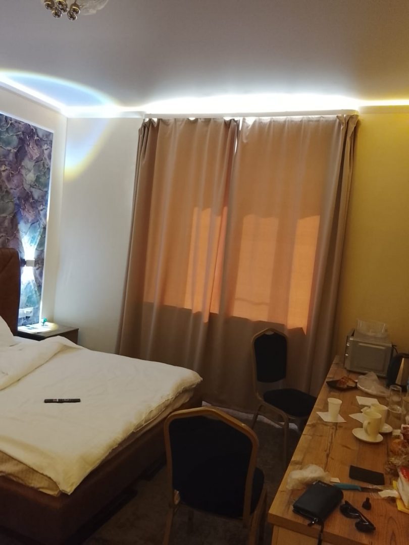 Всё понравилось в этот раз брал номер люкс улучшенный в номере есть всё необходимое для проживания нагреватель для воды 2 дивана,барная стойка,отдельный кухонный гарнитур с мойкой,посуда и вода для питья в номере тоже есть Я вентилятор тоже есть что очень порадовало
