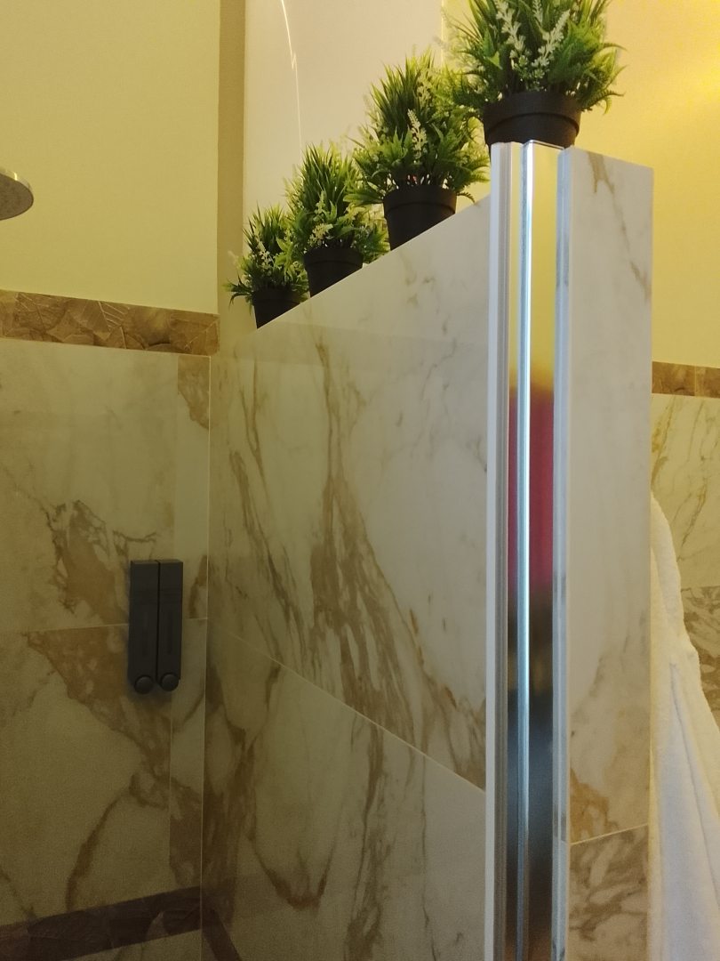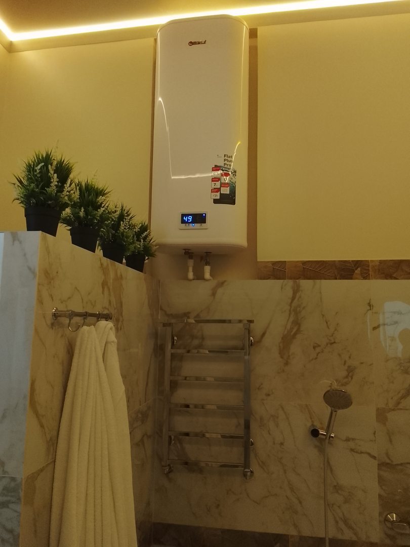 Уютный отель. Мы бронировали номер люкс, и, когда зашли в квартиру, нас немного испугало, что в ней может быть холодно, так как размеры комнаты впечатляли, а потолки были очень высокими! Однако все оказалось прекрасно: в номере было тепло, стоял обогреватель и замечательный электрический камин. Нам предоставили тапочки, полотенца и халаты. Зубного набора не оказалось, но он нам и не был нужен.
