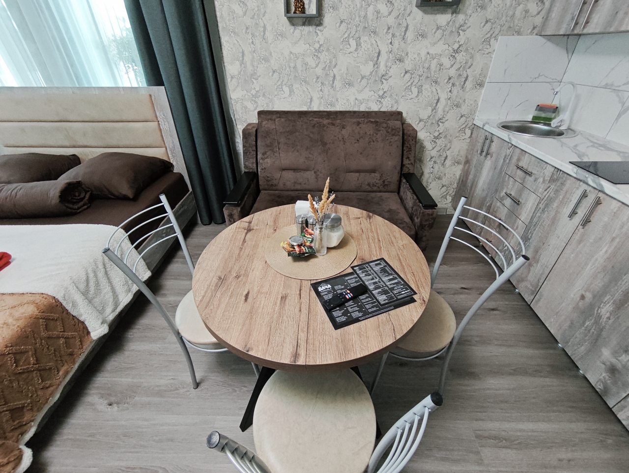 Брали небольшую студию на несколько дней, оказались они очень комфортные для проживания. Ничего необычного, но все очень хорошего качества и есть все необходимое. На кухне - комплект посуды, столовые приборы, полезная бытовая техника, в ванной комнате - гель для душа, шампунь. Отличное расположение в центре.