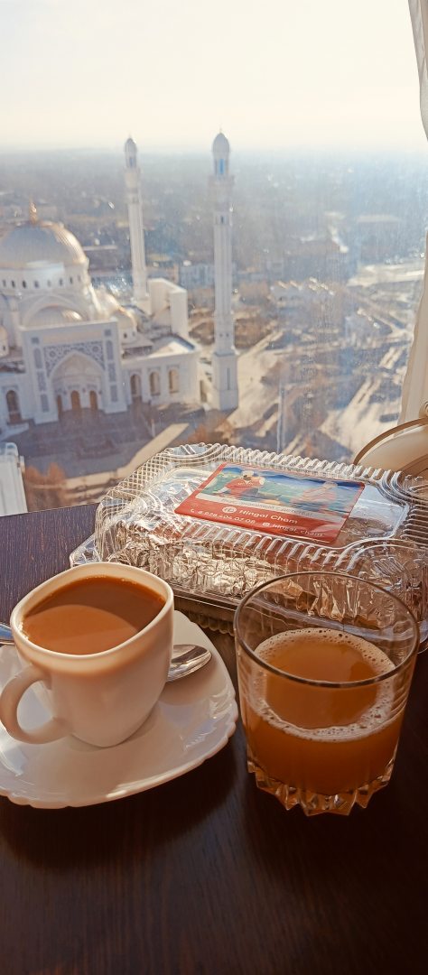 Останавливалась в отеле второй раз, ранее была летом. Нравится, что администраторы отеля идут на встречу и заселяют в номер, прислушиваясь к пожеланиям. Оба раза для меня было важно - вид на мечеть, это непередаваемое зрелище! Красота постройки, подсветка, ради этого стоит приехать в Шали! А азан, который звучит ночью - настолько наслаждение для слуха, вы слышите живое исполнение, и снова умиротворенно засыпаете. В первый приезд я жила в двухместном номере на 14 этаже, в этот раз на 19!!!! В одноместном номере у самых часов. В номере отдельная ванная комната, кровать, шкаф, тумбочка, кресло, стол, холодильник, чайник, душевые принадлежности. Приезжала 8 января, зима, в номере было тепло и уютно.