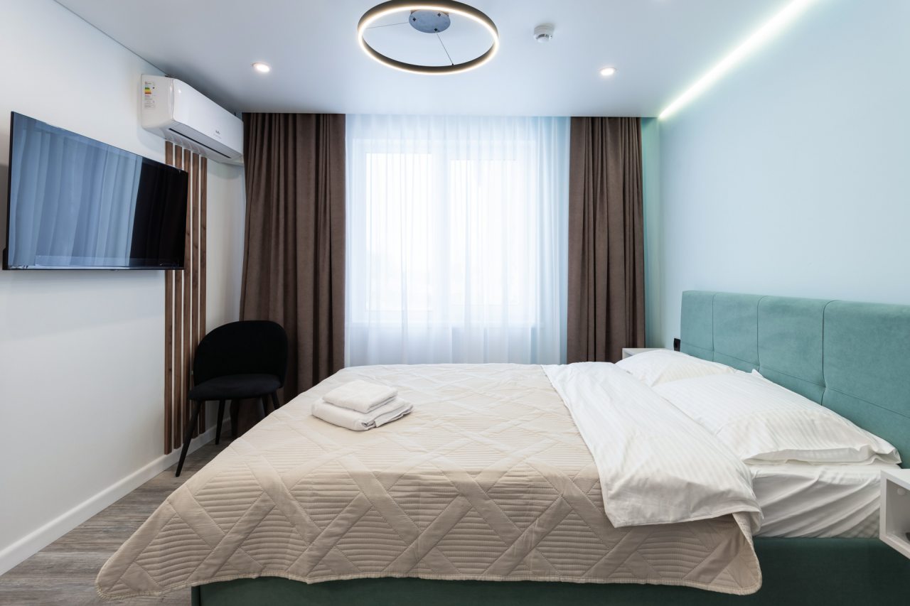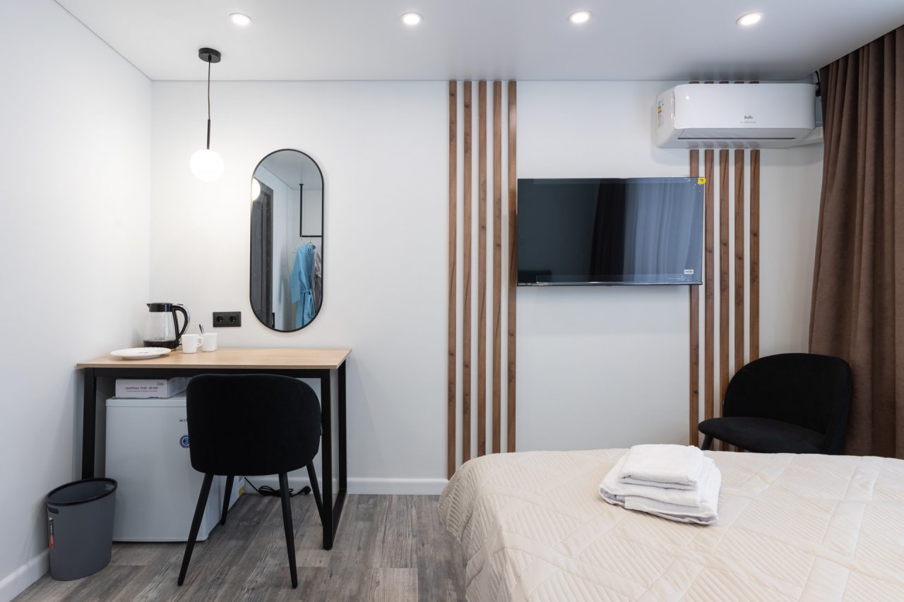Для проживания оборудованы комфортабельные номера, которые оснащены всем необходимым: кроватью, белоснежным постельным бельем, кондиционером, а также собственной ванной комнатой. Подключена беспроводная сеть Wi-Fi. В комнате установлен телевизор с плоским экраном.