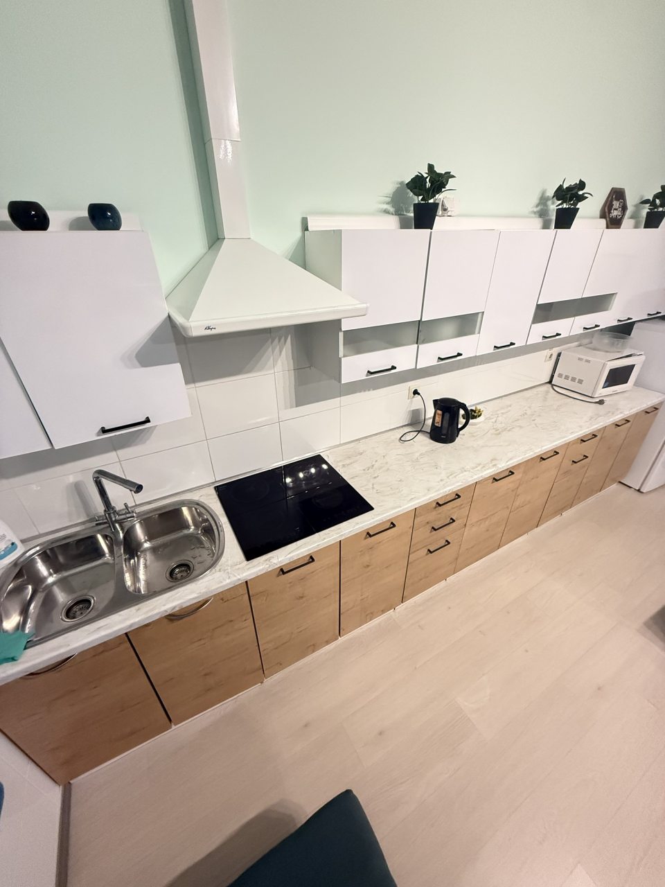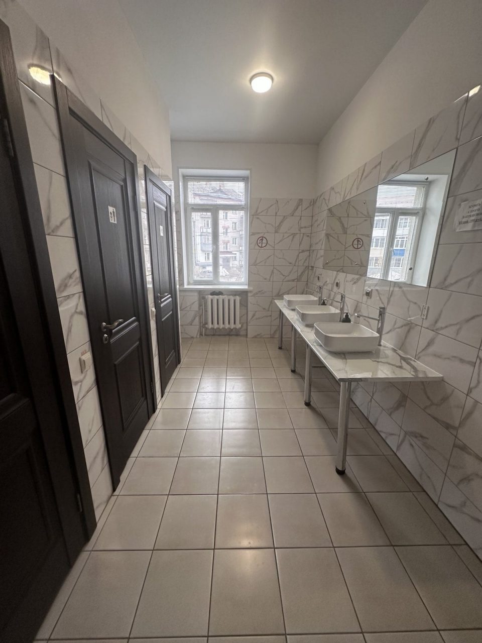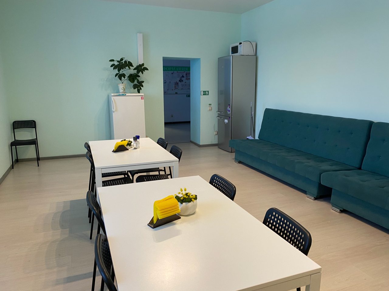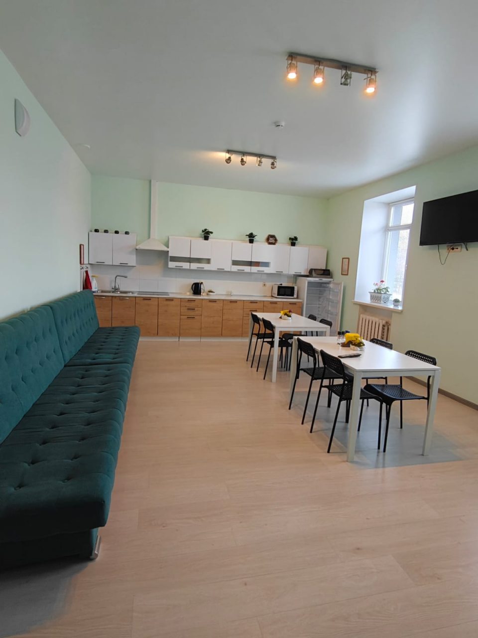 На общей кухне вы сможете готовить домашние блюда, поскольку в наличии плита, СВЧ, чайник, холодильник, обеденная зона.