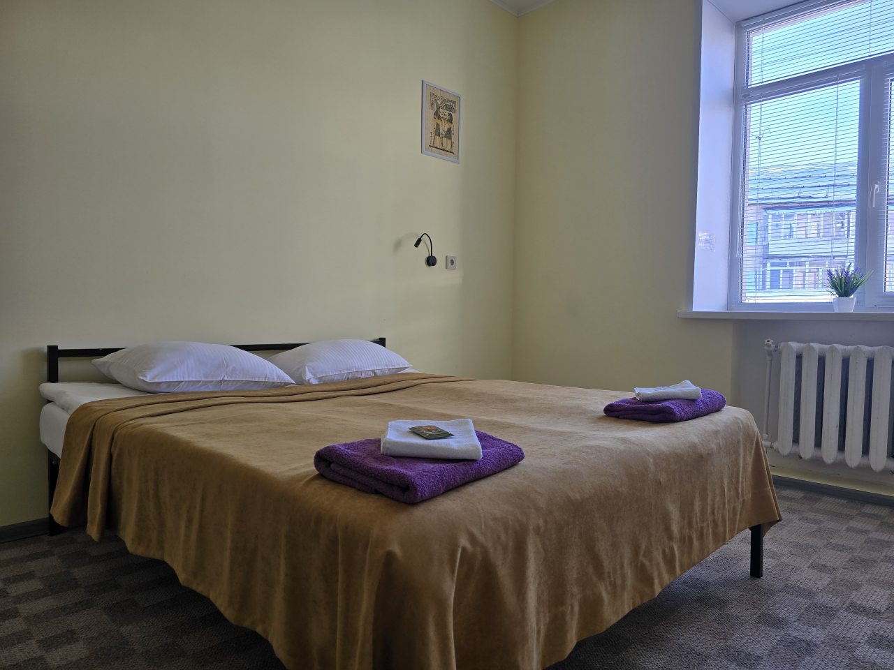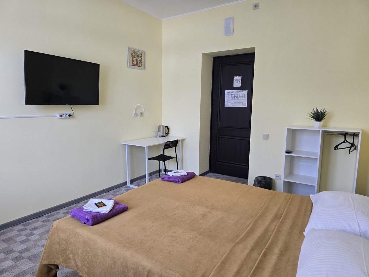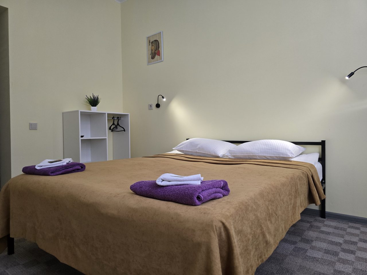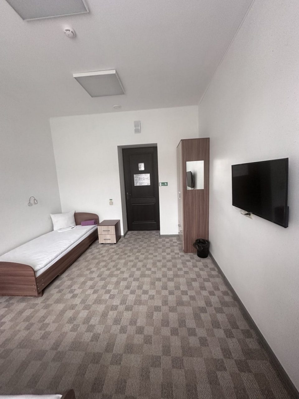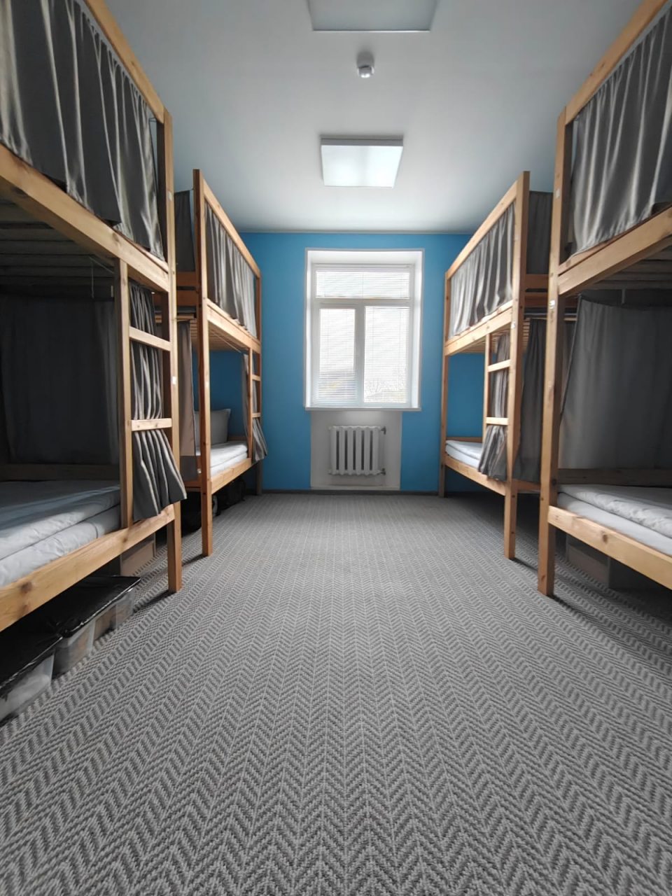Для проживания предлагаются комфортабельные номера различной комплектации. В каждом вас ожидает удобная кровать, прикроватный светильник и розетка, а также мебель для хранения вещей. Санузел общий, с необходимой сантехникой. Среди дополнительных удобств — стиральная машина и доступ к Wi-Fi.