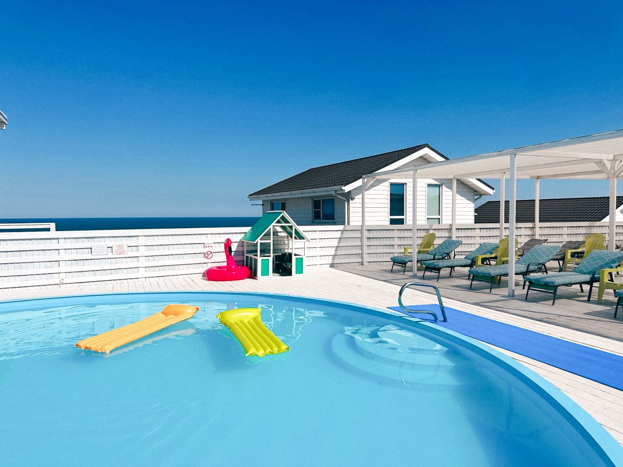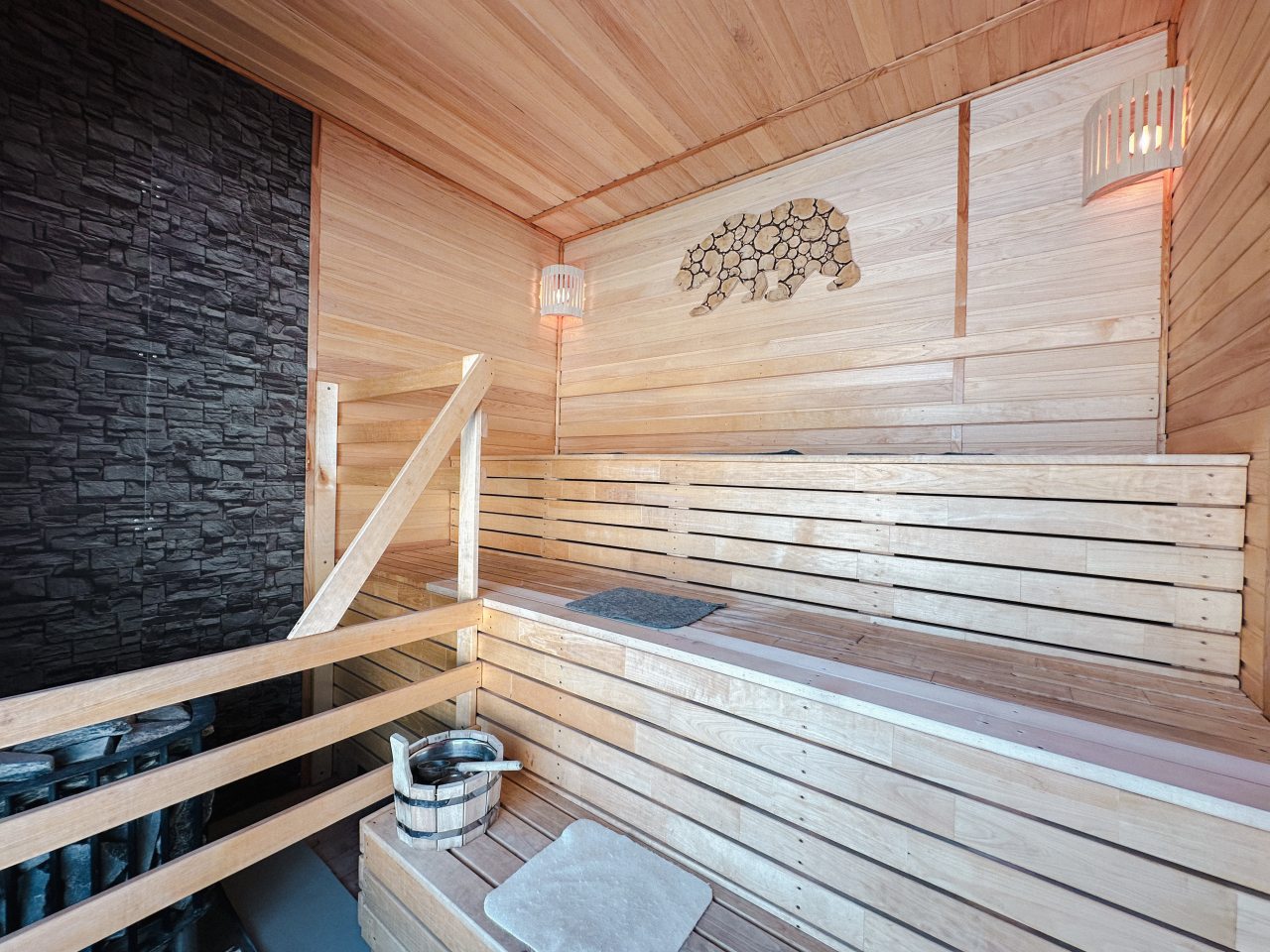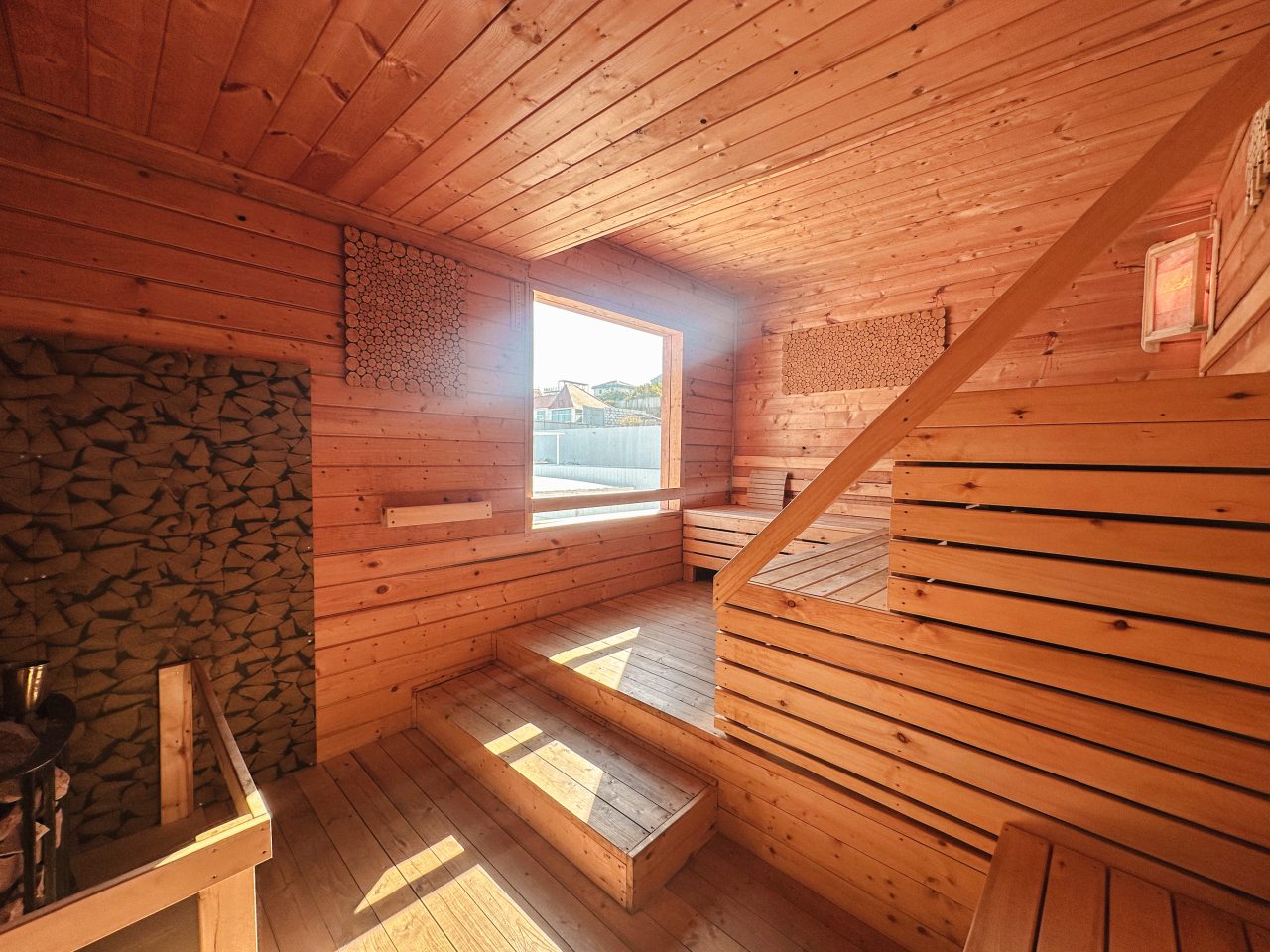 База отдыха усеяна красивыми домиками, сделанными из дерева. Находится она на побережье залива, рядом дикий пляж, там можно отлично отдохнуть, но и на территории есть банька, бассейн. База обустроена очень современно, в домиках есть своя ванная комната. Есть кухня со всей нужной утварью для комфорта. Мы и шашлыки успели приготовить на местном мангале.